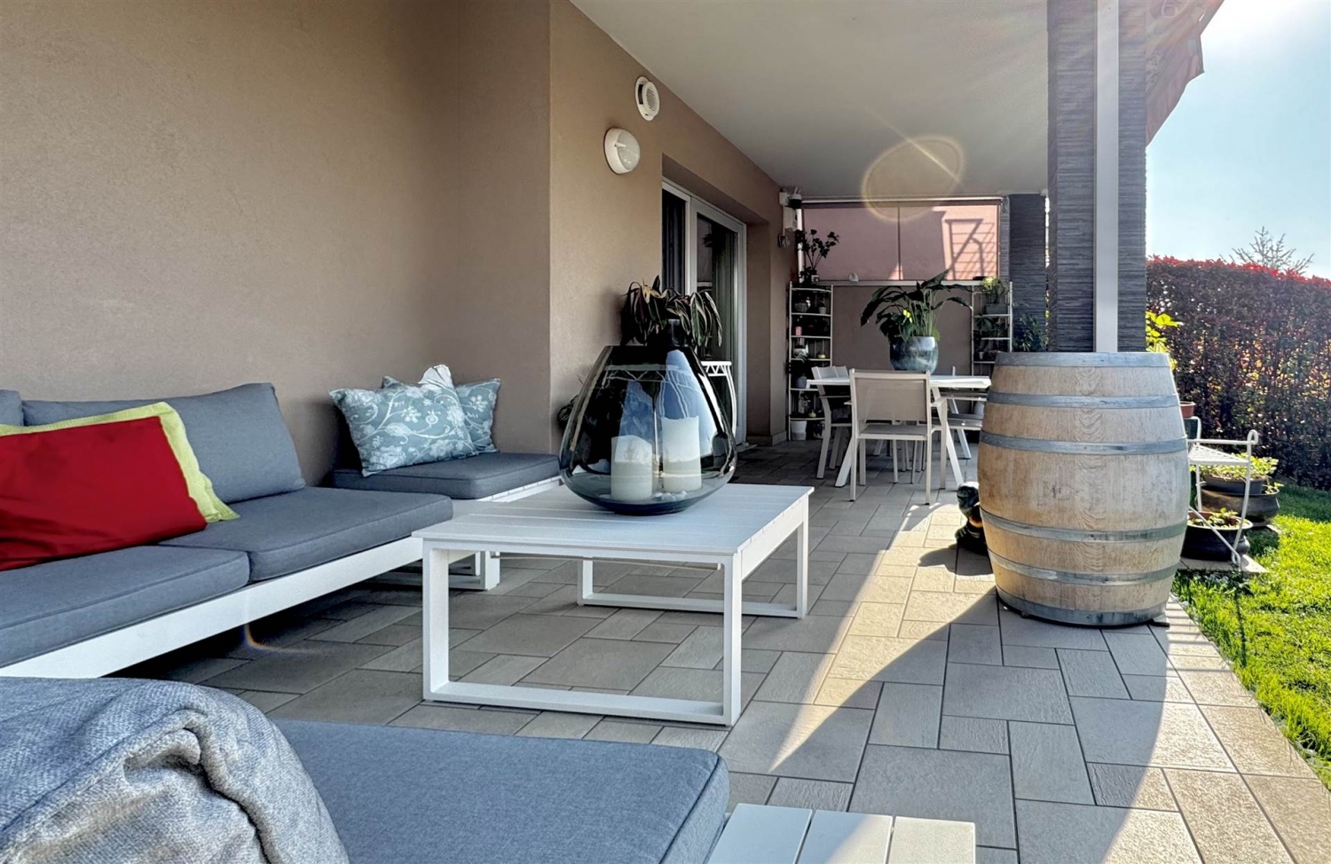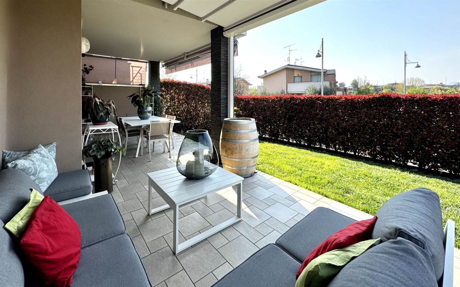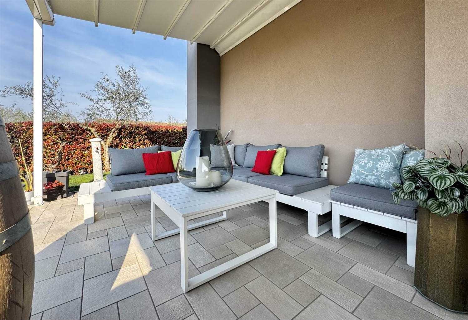 Nel cuore di moniga del garda, in elegante e riservato contesto residenziale in pieno centro, proponiamo in vendita esclusiva un raffinato trilocale in classe energetica a4, completamente arredato con gusto e pronto da vivere.l'immobile conquista per il suo straordinario spazio esterno: un curato giardino privato di circa 130 mq, che abbraccia l'abitazione su due lati, ideale per momenti di relax e vita all'aria aperta. La predisposizione per l'idromassaggio e l'elegante portico di circa 25 mq con pergotenda trasformano l'esterno in una vera estensione della zona living.l'ingresso si apre su un accogliente soggiorno con cucina a vista, impreziosito da un'ampia vetrata che crea una perfetta continuità tra interno ed esterno, regalando luce e armonia agli ambienti.la zona notte, ben separata, offre la camera matrimoniale, una seconda ampia camera da letto, entrambe con accesso diretto al giardino; oltre a un bagno finestrato e a un ripostiglio.completa la proprietà un comodo posto auto interno, accessibile dal giardino tramite cancello elettrico; se vi fosse l'esigenza, esiste la possibilità di acquistare uno spazioso box doppio.dotato delle più moderne soluzioni impiantistiche, l'appartamento gode di riscaldamento a pavimento collegato all'impianto geo termico, aria condizionata, ventilazione meccanica controllata (vmci), impianto di allarme e videosorveglianza, serramenti performanti con zanzariere incluse e impianto di irrigazione.la palazzina, realizzata nel 2017, è servita da pannelli solari per la produzione di acqua calda e supporto al riscaldamento, con costi già inclusi nelle spese condominiali.soluzione ideale per chi cerca un'abitazione esclusiva, moderna ed efficiente, senza rinunciare alla comodità dei servizi e al fascino del lago di garda. classe energetica: a4