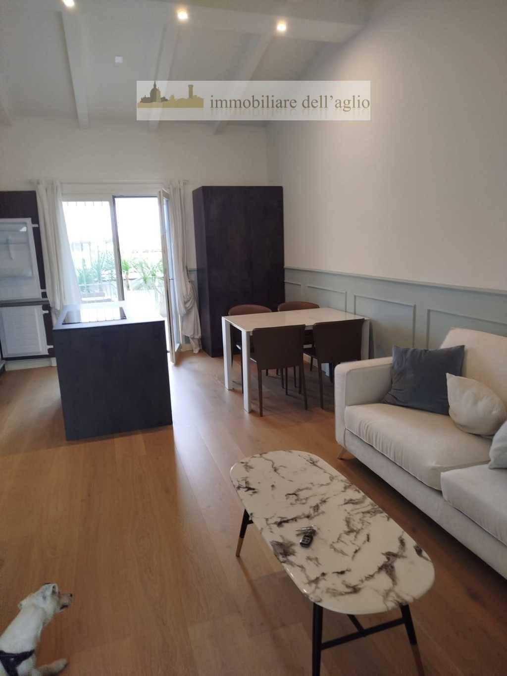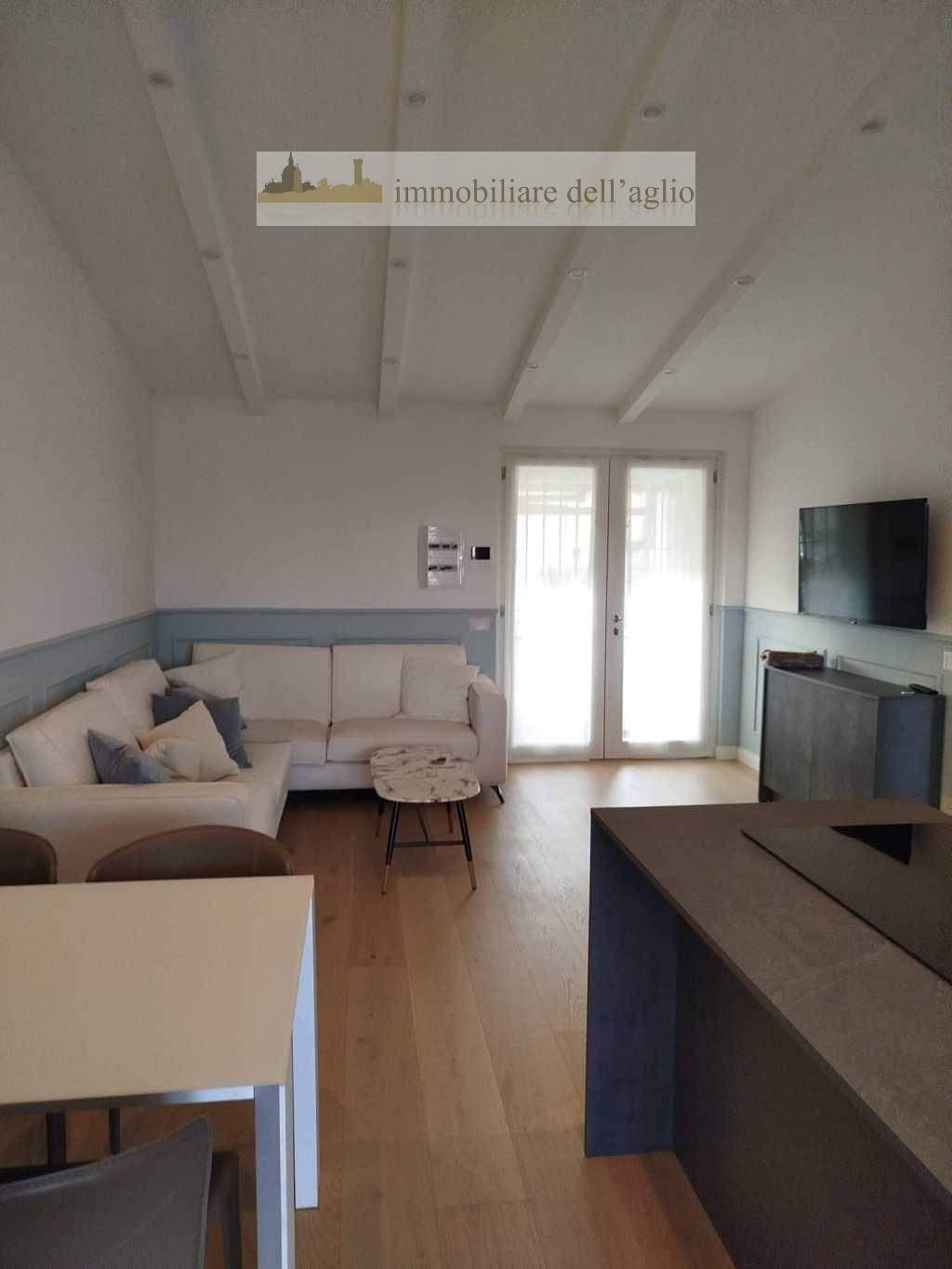 Nel centro storico di padenghe sul garda, a pochi passi da tutti i principali servizi, proponiamo elegante trilocale al secondo ed ultimo piano di una piccola e riservata palazzina. L?appartamento, finemente arredato, si distingue per la sua luminosità e per le tre terrazze vivibili che ne esaltano il comfort.la zona giorno è composta da un ampio soggiorno con angolo cottura moderno e penisola centrale, tavolo da pranzo e zona relax con divani. Da qui si accede a una spaziosa terrazza attrezzata, ideale per cene estive e momenti di assoluto relax all?aperto.la zona notte ospita due camere da letto, una matrimoniale e una singola, entrambe con accesso a terrazze private. Il bagno, rifinito in pregiato marmo grigio, è dotato di una comoda doccia e arredi di qualità.completano la proprietà due posti auto coperti e una cantina al piano interrato. L?immobile è termoautonomo e gode di spese condominiali contenute.