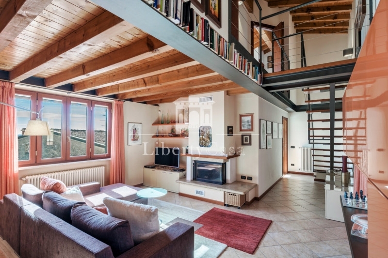 A raffa di puegnago, in un contesto residenziale elegante e curato realizzato nel 2003, proponiamo in vendita un luminosissimo attico su due livelli di ampie metrature. Le travi a vista, le altezze importanti e l'atmosfera calda degli ambienti lo rendono una casa con carattere, ideale per chi desidera spazi generosi e privacy senza rinunciare alla comodità.l'ingresso accompagna al grande soggiorno, inondato di luce grazie alle ampie vetrate. Qui il camino diventa il cuore della zona living, perfetto per creare un ambiente intimo nelle stagioni più fredde. Sullo stesso piano si trovano un pratico bagno di servizio e la camera matrimoniale, pensata come una vera suite: cabina armadio privata e bagno en suite con doccia.salendo al livello superiore si apre una zona cucina dalla quale si gode una splendida vista sul lago e sulla rocca di manerba, uno scorcio che regala fascino e respiro in ogni momento della giornata con sfogo sul portichetto tipo giardino d'inverno. Troviamo infine un'ulteriore camera con cabina armadio/ripostiglio e il suo bagno en suite, per chi desidera una seconda suite indipendente.a completare la proprietà, un ampio garage doppio in lunghezza e un ulteriore box auto, attualmente utilizzato come spaziosa cantina: una dotazione preziosa e rara, soprattutto in termini di praticità e capacità di contenimento.una soluzione elegante e funzionale, adatta a chi cerca un attico con anima, luce e una vista che conquista.