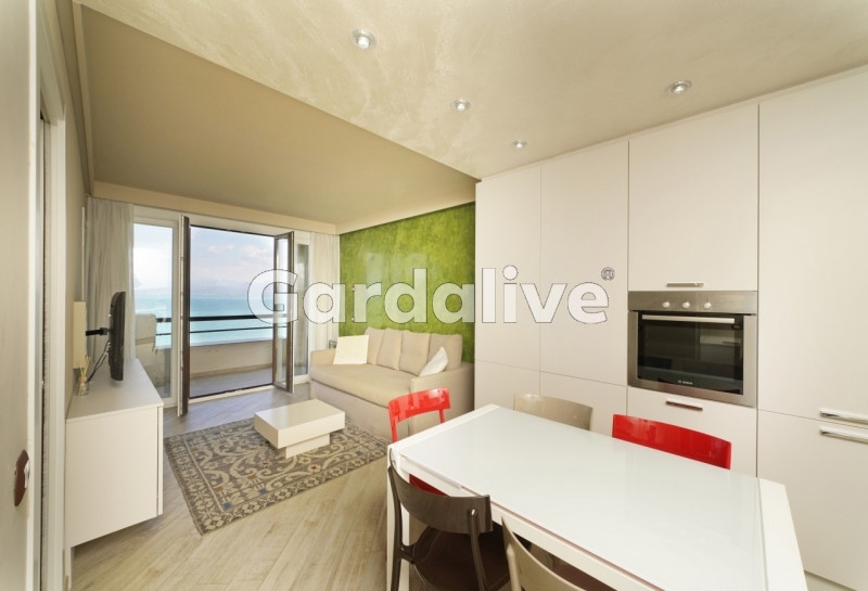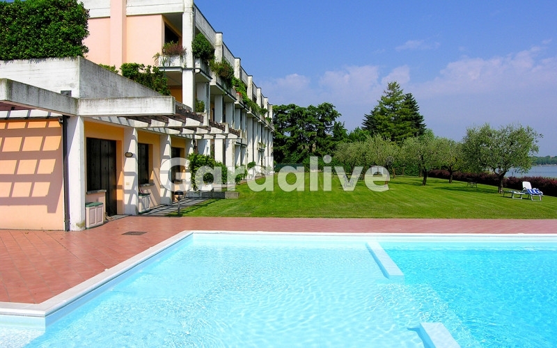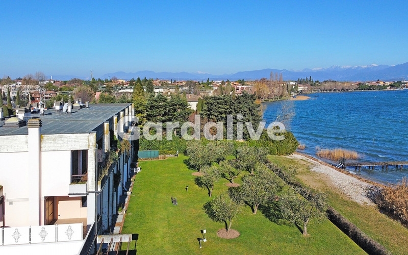 All'interno di un esclusivo condominio che gode di posizione privilegiata, proponiamo un ampio bilocale al secondo e ultimo piano, dotato di terrazza con vista mozzafiato.l'appartamento è raggiungibile tramite ascensore ed è cosù composto: ingresso in comodo disimpegno, luminoso soggiorno open-space con angolo cottura, zona pranzo e salotto, il tutto godendo di una grande finestra che ritrae il lago e il monte baldo; la proprietà si completa quindi di una camera matrimoniale, anch'essa con vista. Alla terrazza abitabile, da cui si possono anche vedere il giardino, la spiaggia e la piscina condominiali, si accede sia dalla sala che dalla camera da letto.oltre a queste stanze, troviamo una seconda camera confinante con la padronale, arredata con letto singolo, armadio e comodino, che può quindi fungere sia da stanza singola che da cabina armadio. Il bagno, ampio e luminoso, dotato di comoda doccia, è caratterizzato da un esclusivo lucernario con apertura elettrica.completano la proprietà un posto auto esterno e un posto auto coperto, di proprietà.il condominio, come accennato, è posizionato sul lungolago di lugana e ha un esteso giardino condominiale e una piscina direttamente a lago: la vista dal giardino e dalla casa sono invidiabili.appartamento esclusivo perfetto per godere del lago e della penisola di sirmione, a un passo da tutti i servizi e le comodità di colombare e lugana.il tuo referente per questo immobile: chiara bosettiemail: - tel.: + cell.: +