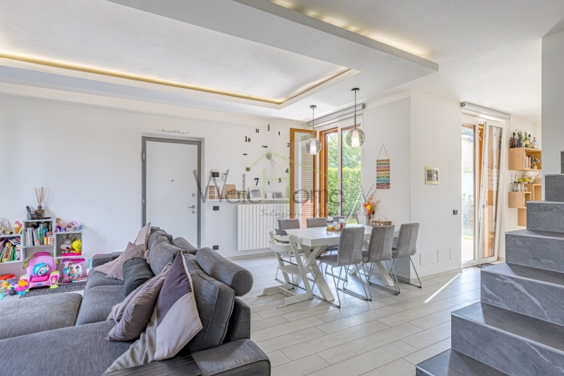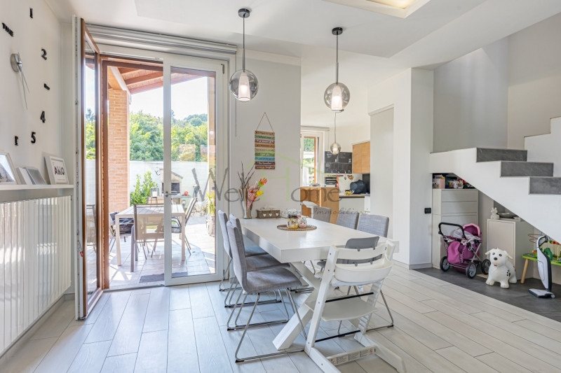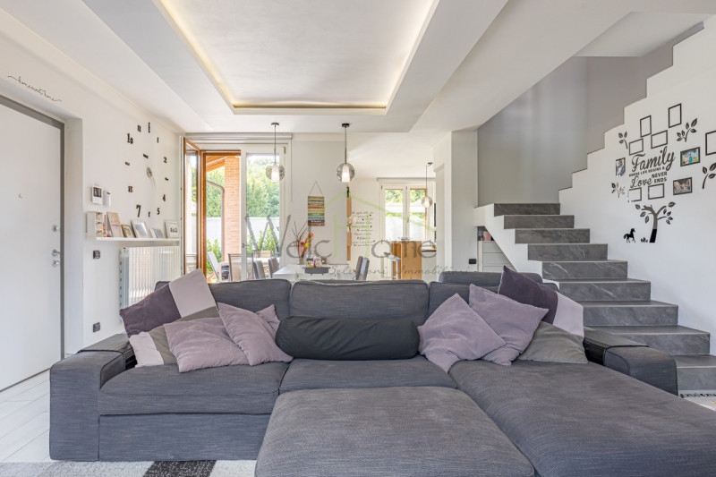 Porzione di bifamiliare recente in ottimo stato.in una delle zone più residenziali di albavilla, proponiamo in vendita una villetta bifamiliare sviluppata su quattro livelli sapientemente organizzati, ideale per chi desidera comfort, modernità e spazi ben distribuiti.il complesso, composto da sole quattro unità abitative, è completamente recintato e offre privacy e sicurezza grazie a un cancello con corsello comune. Da qui oltre all'accesso al garage situato al piano seminterrato, con pochi gradini accediamo ad un curato giardino privato che conduce all'ingresso principale.la zona giorno, luminosa e ben distribuita, ospita un soggiorno dotato di camino con armadiatura ad incasso, una zona pranzo a servizio di una cucina vivace e funzionale, dotata anche di uscita sul portico.tutta la zona giorno si affaccia ed ha accesso diretto sul giardino privato, gestito con impianto d'irrigazione e un manto erboso sintetico, ideale per chi ama gli animali senza rinunciare alla praticità, un spazio curato ideale per trascorrere piacevoli ore all'aperto in compagnia.la scala, aperta sulla zona giorno per donare maggiore luminosità e respiro agli ambienti, conduce al primo piano dove si trovano un bagno padronale e tre camere da letto, attualmente adibite a sala giochi, cameretta e cabina armadio. Ogni locale di questo piano è impreziosito dall'uscita su un balcone.infine, all'ultimo livello, abbiamo un locale mansardato che ad oggi accoglie una spaziosa camera matrimoniale con angolo studio. L'ambiente è caratterizzato da travi a vista sbiancate che creano un'atmosfera intima e raffinata.al piano seminterrato troviamo un ampio box in grado di ospitare due auto. Una porta tagliafuoco conduce al disimpegno che separa il locale lavanderia con doccia da un locale che ospita una calda ed accogliente taverna, perfetta per momenti conviviali.ampia possibilità di parcheggio nelle immediate vicinanze della proprietà.questa villetta rappresenta una soluzione perfetta per chi cerca un'abitazione elegante, moderna e funzionale, inserita in un contesto residenziale tranquillo e riservato.