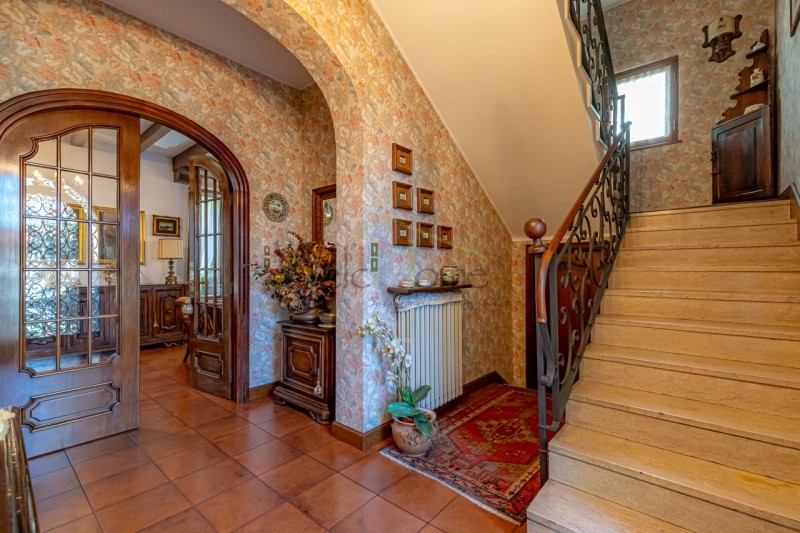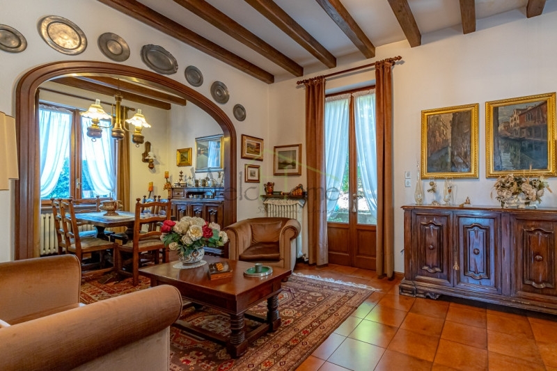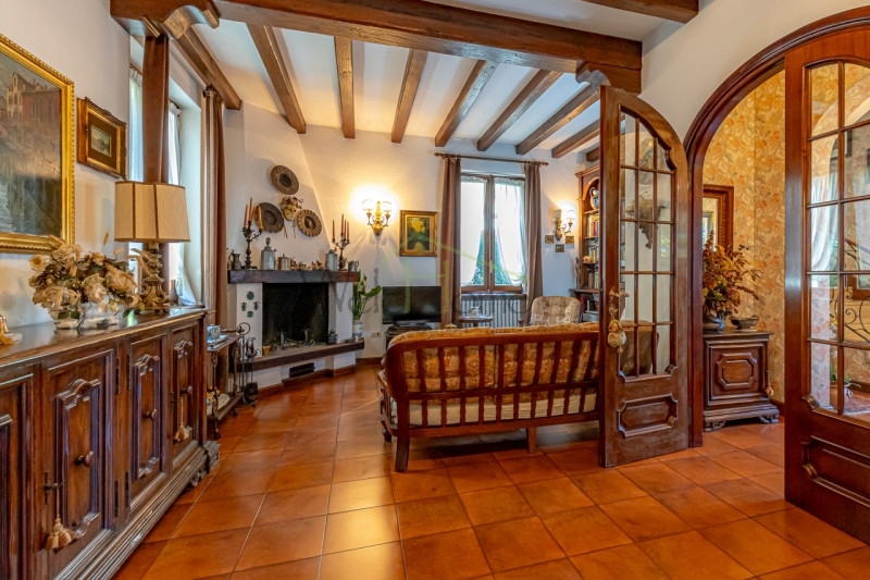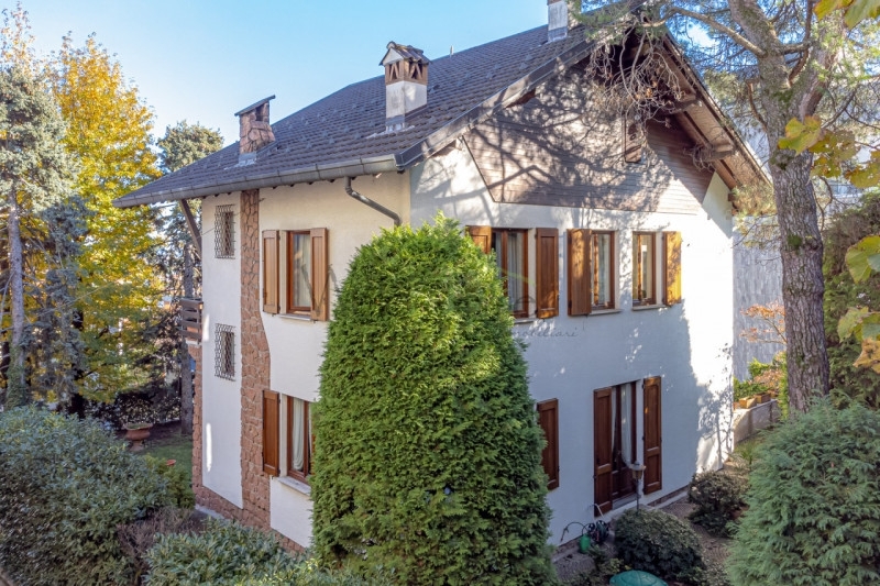 In una delle zone più belle di cantù proponiamo particolare villa indipendente, ricca di sapore e di charme e impreziosita da un'architettura che ricorda i vecchi chalet di montagna.questa villa edificata dagli attuali proprietari in uno dei punti più collinari e panoramici della città presenta una facciata rifinita con pietra e legno ed è evidente la cura dei dettagli attraverso un gusto classico ma allo stesso tempo ricercato.la villa si trova all'interno di un lotto di circa 550 mq ed è composta in due piani fuori terra oltre a un piano mansardato e uno seminterrato ad uso accessorio, la superficie interna totale è davvero importante risultando complessivamente superiore ai 400 metri quadrati:al piano rialzato, varcato un affascinante portone ad arco in ferro battuto si presenta un ampio ingresso che oltre ad accogliere l'ospite, permette di identificare cosa offre la casa: troviamo infatti una scala a salire, una a scendere, e un doppio portone ad arco in legno e vetro verso l'ampio salone.il salone, caratterizzato da travi in legno a vista, è di metratura generosa tanto che attualmente ospita un'ampia area pranzo, un salottino da conversazione e una confortevole area divano con imponente camino a legna, da questa zona abbiamo una comoda uscita sul riservato giardino sul retro; il piano è poi completato da un'ampia cucina abitabile con parquet in rovere con posa a spina italiana e un bagno di servizio finestrato.il piano primo, come detto collegato dall'androne con ampia scala in muratura, presenta 3 ampie camere, tutte di metratura generosa, e due bagni oltre a un balcone, da segnalare da questo piano una vista panoramica sulla brianza davvero invidiabile.il piano mansardato, di par superficie a quelli sottostanti, è stato solo in parte sfruttato ad uso ufficio/archivio ma anch'esso è impreziosito da un balcone con una vista ancor più bella di quella del piano inferiore.il piano seminterrato si presenta come un ampio spazio open space/autorimessa, viste le ampie dimensioni è possibile valutarne un utilizzo parzialmente differente.l'intera proprietà è in ottime condizioni di manutenzione, anche il giardino è piantumato e facilmente sfruttabile.proprietà consigliata a chi apprezza i dettagli e lo stile classico, ed è disposto a valutare negli anni alcuni interventi di ristrutturazione conservativi che non privino la casa delle sue caratteristiche che gli donano un'eleganza senza tempo. Date le superfici generose, sicuramente superiori al fabbisogno di una famiglia media, può essere facilmente convertita a soluzione per due famiglie.libera subito.