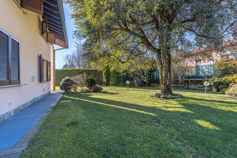 A montorfano, piccolo e verde paese alle porte di como, noto per il suo lago balneabile e per la presenza del prestigioso circolo golf villa d'este, proponiamo ampia villa singola inserita in un residence esclusivo e altamente signorile.la proprietà fa parte di un contesto riservato di sole 14 ville, pensato per garantire privacy, tranquillità e sicurezza. Edificata nei primi anni 2000 su un lotto di oltre 1.000 mq, la villa è stata ristrutturata internamente nel 2024, con finiture eleganti e soluzioni abitative attuali.la zona giorno è progettata per vivere gli spazi in continuità: l'area living ospita comodamente più divani, mentre la zona pranzo, pensata per accogliere un grande tavolo, è impreziosita da ampie portefinestre che creano un dialogo diretto con l'esterno. Da qui si accede a un portico coperto, vero prolungamento della casa durante la bella stagione, ideale per pranzi, cene e momenti di relax all'aperto. A completare l'ambiente, una zona più raccolta attorno al camino, che rende l'atmosfera calda e accogliente anche nei mesi invernali.la cucina abitabile, separata da una raffinata porta in vetro rimadesio, è un ambiente a sé, funzionale ma di grande impatto estetico, arredata poliform e completata da un tavolo perfetto per la quotidianità. Sempre su questo livello troviamo un bagno di servizio con finiture effetto marmo e una camera matrimoniale comoda e riservata, dotata di armadiatura a muro e bagno en suite con doccia, ideale anche come suite per ospiti o come camera padronale al piano. Questo piano è stato completamente ristrutturato nel 2024 anche per la parte impiantistica e dispone di riscaldamento a pavimento e aria condizionata.il piano superiore ripropone la stessa generosità di spazi e colpisce per il carattere caldo dato dalle travi a vista. Qui si sviluppano tre camere di ampia metratura, ben distribuite e servite da due bagni finestrati con doccia. A completare il piano, un ulteriore ambiente oggi utilizzato come zona lettura o studio, estremamente versatile: può facilmente diventare una quarta camera oppure, realizzando una cucina, trasformare l'intero piano in un appartamento semi-indipendente, soluzione ideale per famiglie numerose, genitori-figli o per chi desidera un'abitazione con doppia unità.il piano seminterrato aggiunge valore e funzionalità alla villa, offrendo spazi accessori difficili da trovare. Qui troviamo una grande taverna con bagno dedicato, perfetta come zona hobby, palestra o spazio conviviale, oltre a una comoda lavanderia e alla centrale termica. Il collegamento diretto con il box di circa 100 mq rende questo livello particolarmente pratico: un'autorimessa in grado di ospitare comodamente 3 o 4 auto, oltre a moto, biciclette e tutto ciò che serve a una casa di questo livello.l'area esterna che circonda la villa sui quattro lati è stata pensata come una naturale estensione degli spazi interni. Il portico, direttamente collegato alla zona pranzo tramite ampie portefinestre, diventa un vero e proprio soggiorno all'aperto, ideale da vivere dalla primavera all'autunno. Il giardino, in gran parte piantumato, garantisce privacy e riservatezza e offre lo spazio ideale per la realizzazione di una piscina, perfettamente integrabile nel contesto. All'ingresso, una splendida quercia da sughero accoglie gli ospiti, mentre un comodo piazzale completa l'esterno offrendo pratici posti auto di cortesia.una soluzione importante, elegante e versatile, ideale per chi cerca spazio, privacy e qualità abitativa in uno dei contesti più richiesti dell'area di como.