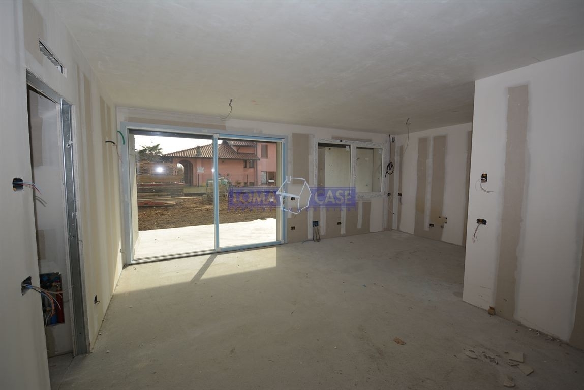 Prossima realizzazione, in zona centrale del paese, sorgerà l'esclusiva e moderna 'residenza magenta diciannove', palazzina signorile composta da 12 appartamenti di metratura importante oltre due attici . Le unità immobiliari poste al piano terreno disporranno di ampi giardini privati di circa 400 mq. Ciascuno, quelle poste al piano primo e secondo disporranno di ampi terrazzi coperti abitabili. Il cantiere sorge in posizione unica e strategica con tutti i principali servizi ,raggiungibili a piedi e nelle vicinanze di tangenziale e stazione ferroviaria. Ogni appartamento avrà la possibilità di avere in dotazione un box doppio in larghezza e una grande cantina. Le finiture interne, di alto livello, sono personalizzabili a scelta del cliente sulla base del capitolato che dispone di un'ampia scelta di pavimenti e rivestimenti e che porterà ad una classificazione energetica a3. In via esemplificativa, ogni appartamento disporrà di riscaldamento a pavimento, pannelli fotovoltaici, predisposizione ventilazione meccanica controllata che permette la gestione del ricambio d'aria degli ambienti con l'esterno, senza la necessità di apertura di finestre o porte. Vi saranno serramenti antirumore, avvolgibili elettrici, videocitofono a codice , predisposizione domotica living smart e predisposizione impianto d'allarme. I box avranno basculanti sezionali automatizzate, con predisposizione di colonnina elettrica per ricarica autovetture. Particolare cura verrà riservata all'impianto di illuminazione comune. Nello specifico, proponiamo in vendita appartamento quadrilocale di mq.120 posto al piano terra con doppia esposizione costituito da ingresso, soggiorno doppio con cucina open space e grande vetrata scorrevole della lunghezza pari a 7 mt., camera matrimoniale con cabina armadio, due camere doppie, due bagni finestrati, ripostiglio, cantina e giardino in proprietà esclusiva di circa mq.420. Possibilità box doppio a partire da € 38.000,00
