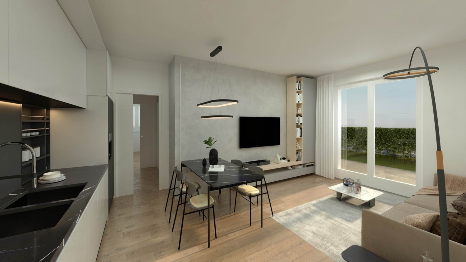 La residenza 'i pioppi' è un piccolo complesso in fase di costruzione composto da 12 appartamenti dove vengono offerti unicamente trilocali tutti con ampi spazi esterni come terrazzi e giardini fruibili. All'interno di questo complesso sarà possibile trovare abitazioni con alti standard energetici e con impianti come riscaldamento a pavimento, vmc, serramenti di taglio termico/acustico, cappotto termico e raffrescamento a richiesta. Tutte le abitazioni possono essere completate e personalizzate da un capitolato variegato e completo. Questa abitazione è un trilocale dotato di ingresso che conduce direttamente alla zona giorno composto da cucina a vista, soggiorno con zona pranzo e zona relax e ampia finestrata che si apre sul portico e sul giardino di questa abitazione. Un disimpegno serve la zona notte composta un bagno, da una cameretta e una camera matrimoniale. Questo appartamento è completato da un ampio giardino il quale copre i due lati liberi. Tutti gli appartamenti di questa nuova residenza possono essere completati con un box doppio o singolo posti al piano interrato e collegati mediante ascensore condominiale. Classe energetica: a3