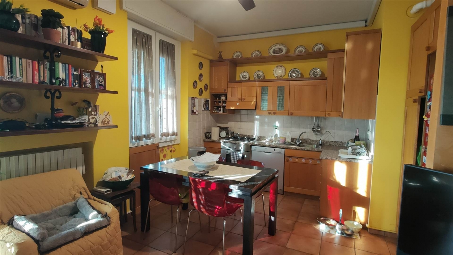 In centro paese bello e luminoso trilocale semiarredato con balcone e cantina. L'immobile è composto da: ingresso direttamente in soggiorno con cucina a vista con l'uscita sul balcone, disimpegno, 2 camere ed 1 bagno. A completamento vi sono le tende da sole, le zanzariere, l'aria condizionata e l'ampia cantina al piano sem:interrato. pro: immobile ristrutturato, tranne il bagno; è stato effettuato il 110%; fotovoltaico; centro paese..contro: piano secondo senza ascensore; bagno sistemato non di recente. classe energetica: a1