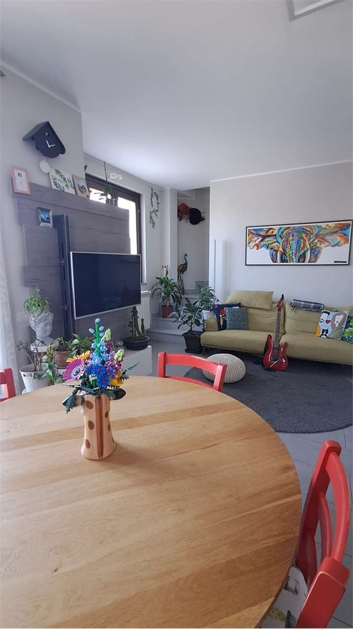 Busto garolfo in mini palazzina di recente costruzione con facciata esterna in mattoni a vista, tetto in legno lamellare a vista, di sole 4 unità disponiamo al primo piano di appartamento con mansarda cosù disposto: mq. 69 al piano primo composto da soggiorno con cucina a vista, terrazzino, disimpegno, bagno, lavanderia e camera matrimoniale dotata di balcone. Scala interna per accesso alla mansarda mq 82 rifinita attualmente open space (altezza max 3 mt. E min. 1,50) mansarda predisposta per ricavare 2 vani . Ripostiglio sottotetto di mq 20. Impianto antifurto, condizionamento, serramenti in legno doppio vetro, persiane esterne in alluminio. Al piano seminterrato ampia cantina di mq 12 con piccola finestra e box doppio in larghezza. classe energetica: e 136,96 kwh/m2 a