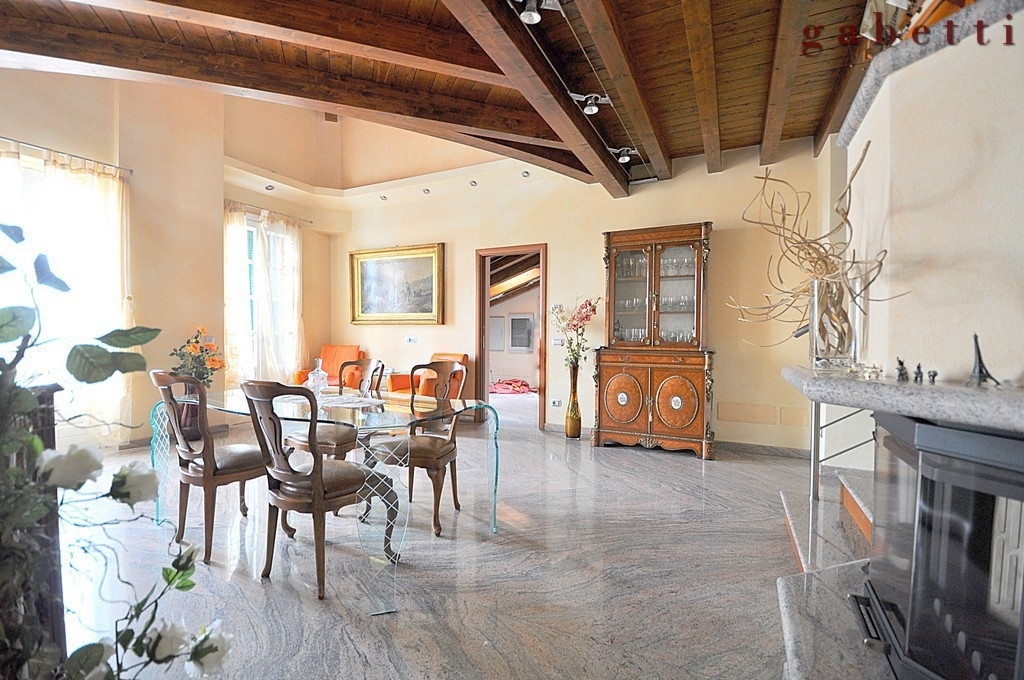 All'ultimo piano del contesto 'residenza matelda' proponiamo esclusivo immobile signorile con balconi, servito da ascensore e con possibilita' di box doppio o quadruplo proposto a parte.lo stabile e' abbracciato dal verde delle campagne, in un tranquillo contesto di passaggio dei soli residenti.all'ingresso e' chiaro fin da subito che ci troviamo di fronte ad un immobile unico, dallo stile ricercato: gli ampi spazi ben distribuiti, il soppalco a vista sulla zona giorno, le finiture pregiate e posate con una cura maniacale del dettaglio.a proposito di finiture: gli ambienti della zona giorno ed il camino, sono rifiniti con granito juparana' rosa/grigio posato a macchia aperta; la zona notte ed il soppalco invece, sono rifiniti con parquet olio noce chiaro. Il bagno di servizio, tutto in beola verde e il bagno dedicato alla camera matrimoniale, rifinito in marmo rosa di portogallo.un immobile dallo stile unico e ricercato.