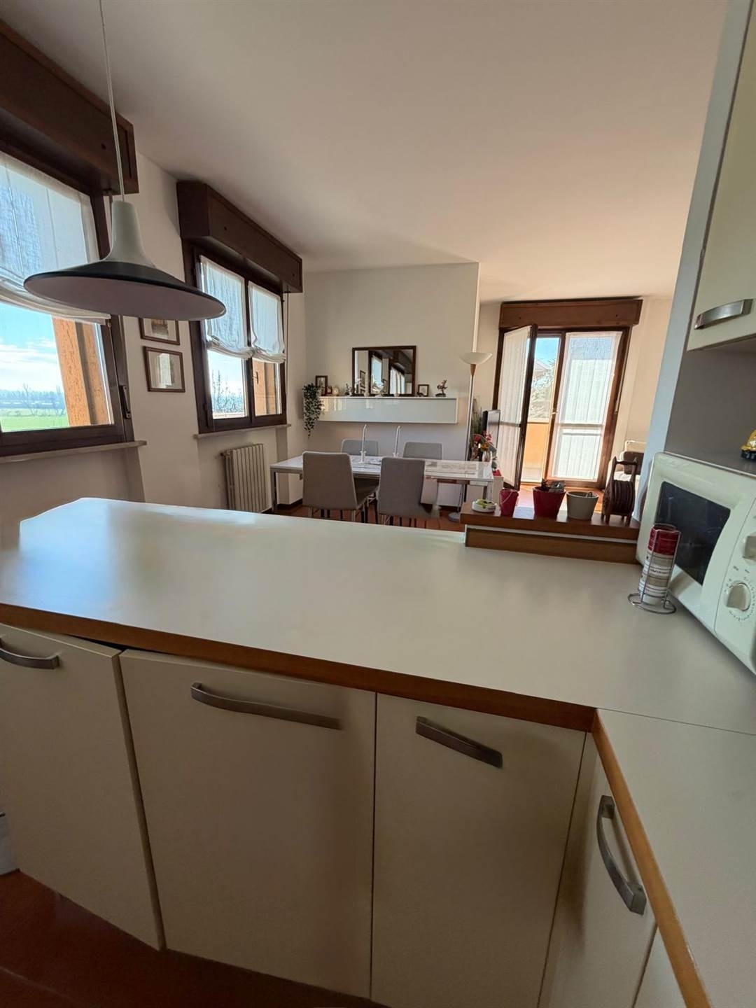 Zona stelle - via aldo moro - in complesso residenziale, al terzo e ultimo piano, proponiamo luminosissimo trilocale orientato est-sud cosi' disposto: al primo livello un comodo ingresso che si apre su un ampio soggiorno diviso in zona pranzo e in zona living, una cucina ampia con piano bar attualmente a vista sulla zona pranzo facilmente ripristinabile in cucina chiusa e abitabile, un bagno con spazio per asciugatrice e lavatrice e un terrazzo coperto con vista panoramica aperta sul verde; al secondo livello due camere da letto che si aprono su un ampio terrazzo coperto che le circonda ( con vano caldaia e punto acqua ) e un bagno finestrato; mentre al terzo livello un comodo sottotetto rifinito, perfetto come locale hobby/palestra/studio o personalizzabile in base alle proprie esigenze. Completa la proprieta' una comoda cantina. Possibilita' box. Classe energetica: non indicata