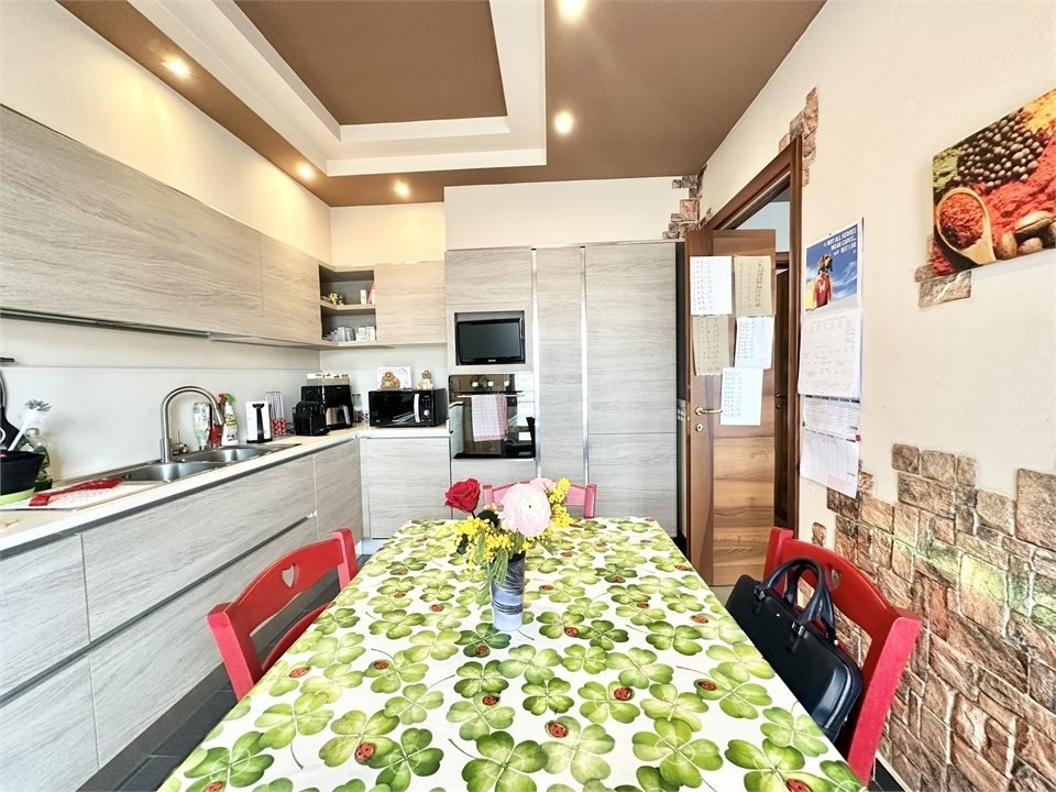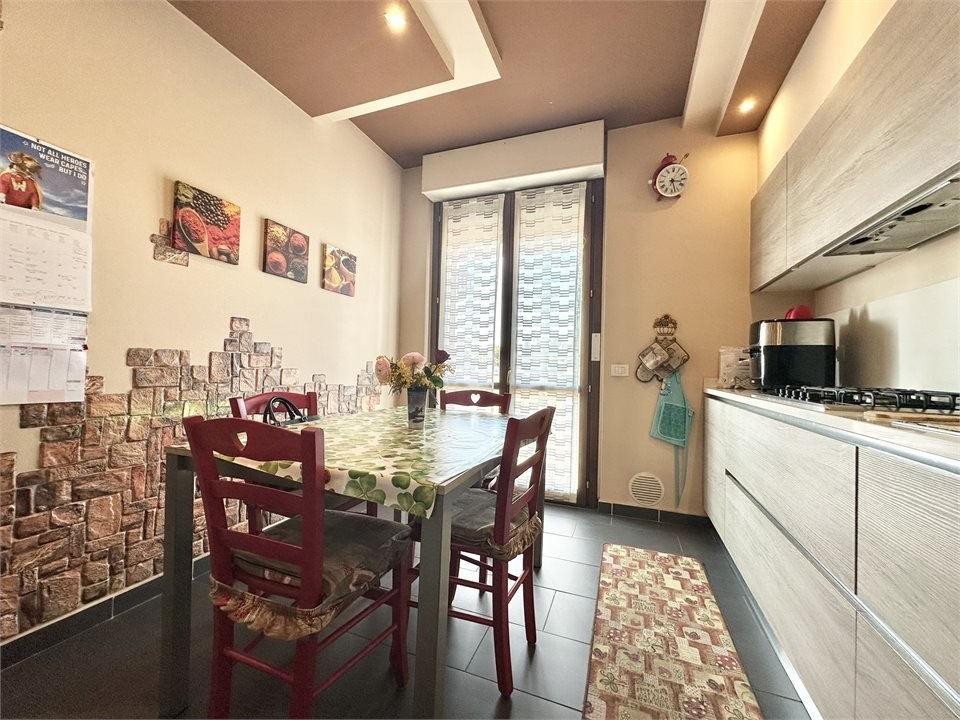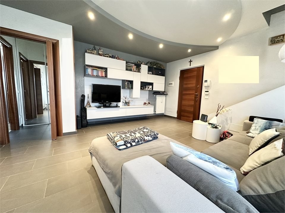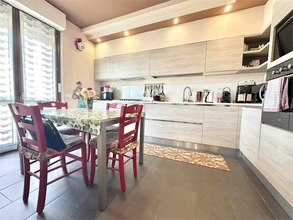 In piccola palazzina del 2009, in zona residenziale molto apprezzata e ricca di verde, abitazione posta all'ultimo piano, suddivisa su due livelli, così composta: ingresso su zona living, cucina abitabile, terrazzino, disimpegno e primo bagno; piano mansarda, collegato da scala in muratura, suddiviso in camera matrimoniale, camera doppia, balcone in comune alle due stanze, secondo bagno e locale guardaroba. L'appartamento si presenta in ottimo stato di manutenzione, rifinito con pavimentazione in gres nella zona giorno e nei bagni, parquet nel reparto notte, accessoriato di impianto di allarme volumetrico e perimetrale, climatizzazione con pompa di calore e tapparelle motorizzate, tenda da sole motorizzata con sensore. Impianto di riscaldamento centralizzato con contabilizzatori di consumi, caldaia a metano installata nel 2023. Completo di box doppio in lunghezza, posto auto interno e cantina. - maggiori dettagli: climatizzato, porta blindata, sistema di allarme, cucina abitabile
