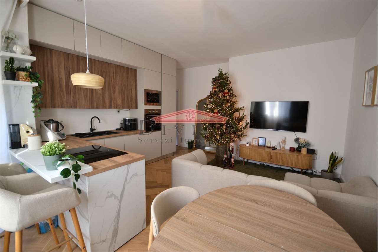 Paderno dugnano zona residenziale vicinanze stazione fnmin signorile contesto condominiale proponiamo esclusivo appartamento ristrutturato con finiture di pregio situato al settimo e ultimo piano.questo raffinato appartamento offre ambienti luminosi e spaziosi, progettati con attenzione ai dettagli:la zona giorno si sviluppa in un open space, dove il soggiorno, la cucina a vista, la zona salotto e la zona pranzo si fondono armoniosamente in un ambiente luminoso e accogliente, ideale per momenti conviviali e cene in compagnia, camera da letto matrimoniale accessoriata di cabina armadio con porta di ingresso a specchio, seconda camera da letto, terza stanza versatile, perfetta come studio o terza camera, bagno padronale con pavimentazione continua in lastre di gress porcellanato effetto marmo calacatta levigato formato grande, doccia realizzata con un cristallo trasparente a tutta altezza soluzione 'walk-in', secondo bagno/lavanderia, ripostiglio, ampio balcone panoramico, locale cantina la piano interrato e locale solaio.dettagli ristrutturazione:pavimento in pregiato parquet in rovere naturale posa a spina ungherese (chevron) in tutti gli ambientiporte bianche laccate a bugne rettangolariimpianto elettrico nuovo con placche living now touchimpianto idraulico nuovodomotica di baseimpianto aria condizionata e pompa di calore a splitinfissi in pvc doppio vetro (in fase di sostituzione dal proprietario)termosifoni a gestione valvole termostaticheun'opportunità unica per chi cerca eleganza, comfort e una posizione privilegiata.possibilità acquistare il boxclasse energetica: in fase di valutazione
