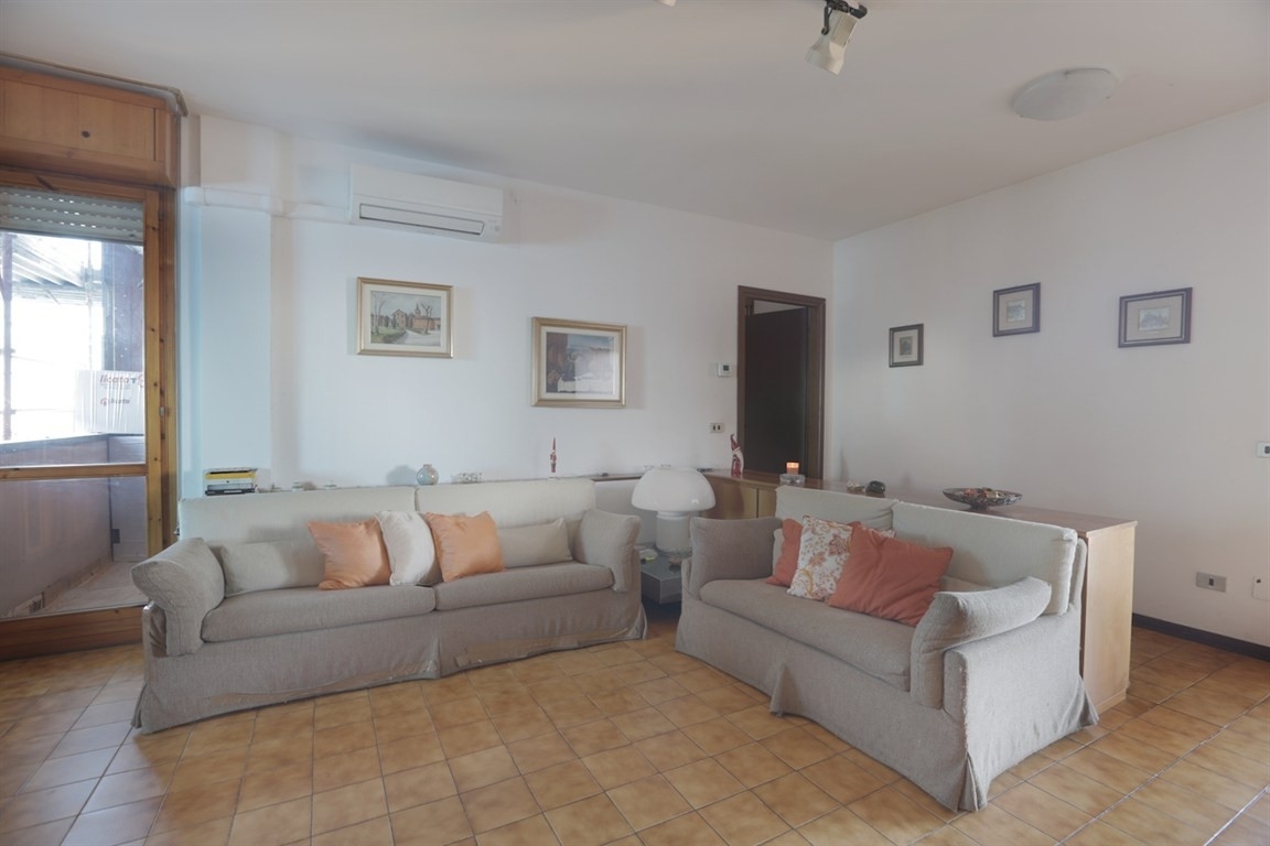 Appartamento di tre locali situato al 6° piano con ascensore di uno stabile di sette piani, arretrato rispetto alla strada e dotato di ampi spazi di parcheggio. La luminosità, la vista aperta e la tripla esposizione contraddistinguono la soluzione abitativa composta da: ingresso nell'ampio soggiorno con accesso al balcone principale, camera studio, cucina abitabile, separata, che dispone di un secondo balcone, zona notte che comprende due camere da letto e un bagno finestrato. La distribuzione degli spazi è razionale e adatta sia a famiglie sia a chi cerca ambienti ben organizzati. L'aria condizionata nel soggiorno, il videocitofono oltre alla disponibilità di posto auto condominiale sono complementi già presenti. Completano la proprietà una cantina inclusa nel prezzo e un box singolo ad un prezzo aggiuntivo di €.15.000