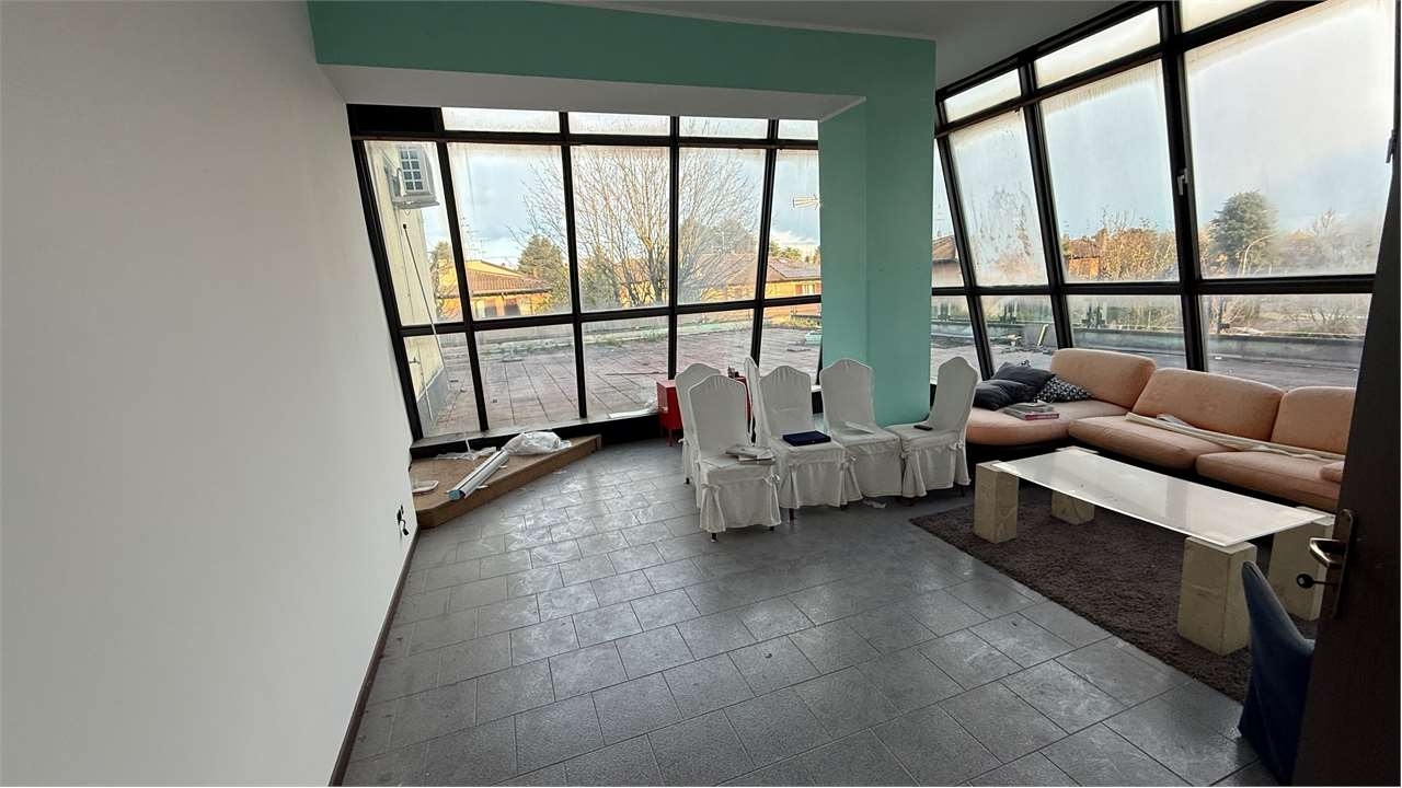 A vizzolo predabissi in viale sarmazzano inserito in contesto commerciale insiste un particolarissimo immobile di oltre 250 mq con destinazione terziario e/o uso per interesse comune aperto al pubblico.l'immobile si presenta con una facciata realizzata in cemento armato faccia a vista e vetro.è composto da :- grande open space al primo piano di oltre 250 mq. Con ampie vetrate e 100 mq di terrazzi.- al piano interrato sono situate cantine e locali tecnico.-è possibile annettere al fabbricato un ampio parcheggio scoperto privato esterno.tutti i piani sono serviti da un impianto di ascensore e un vano scala privato.l'ingresso principale è direttamente da viale sarmazzano.al piano primo sono presenti servizi igienici sanitari.l'impianto di riscaldamento dell'intero immobile è costituito da fancoil .classe energetica: d