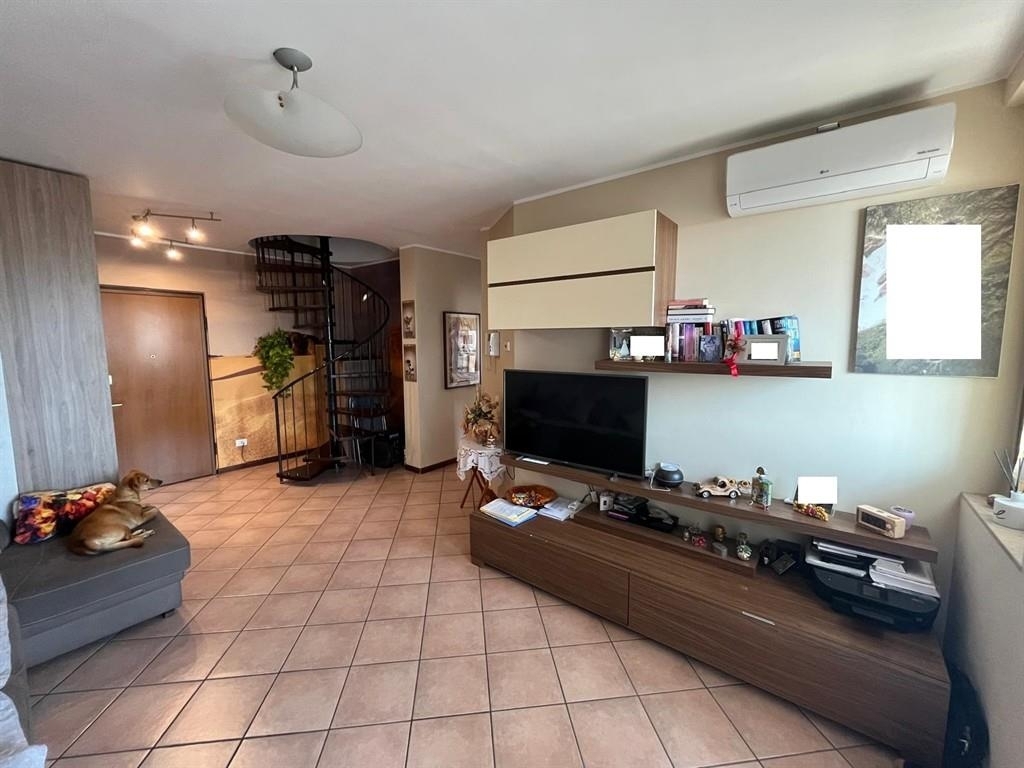 Zona residenziale al confine con varedo, in elegante palazzina di 20 famiglie con facciata in mattoni a vista, panoramico appartamento di 135 mq disposto su 2 livelli cosù composto: (piano terzo di 60 mq) soggiorno con balcone, cucina abitabile con uscita sul balcone e bagno; scala a chiocciola che accede al piano quarto mansardato (75 mq con altezza minima 1,80 m e massima 3,00 m) dove sono presenti 3 camere da letto di cui 2 con balcone e bagno. Cantina e box singolo. Immobile ben tenuto e panoramico esposto ad est con ampi balconi sfruttabili. finiture: ceramica nella zona giorno e nei bagni, parquet nella zona notte. Serramenti in legno con doppio vetro e persiane. Aria condizionata in entrambi i piani. Video citofono. Tutto in perfetto stato. Rif.45