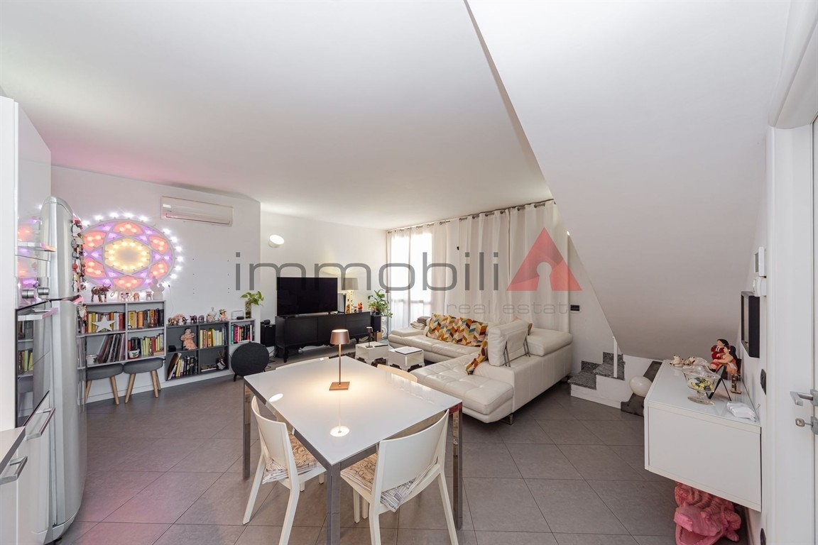 Brugherio zona centro. In recente palazzina proponiamo all'ultimo piano ottimo appartamento di 3 locali di 101mq disposto su due livelli abitativi: ingresso, ampio e luminoso soggiorno con angolo cottura e balcone, disimpegno e bagno con doccia, comoda scala che porta al piano mansardato dove troviamo una ampia camera matrimoniale, lo studio/seconda camera e il bagno con balcone. Riscaldamento centralizzato a gestione autonoma. Completano la proprietà la cantina e la possibilità di box singoli e doppi.€ 279.000,00