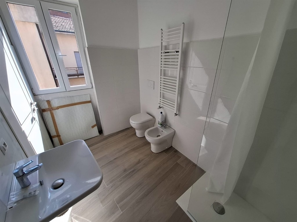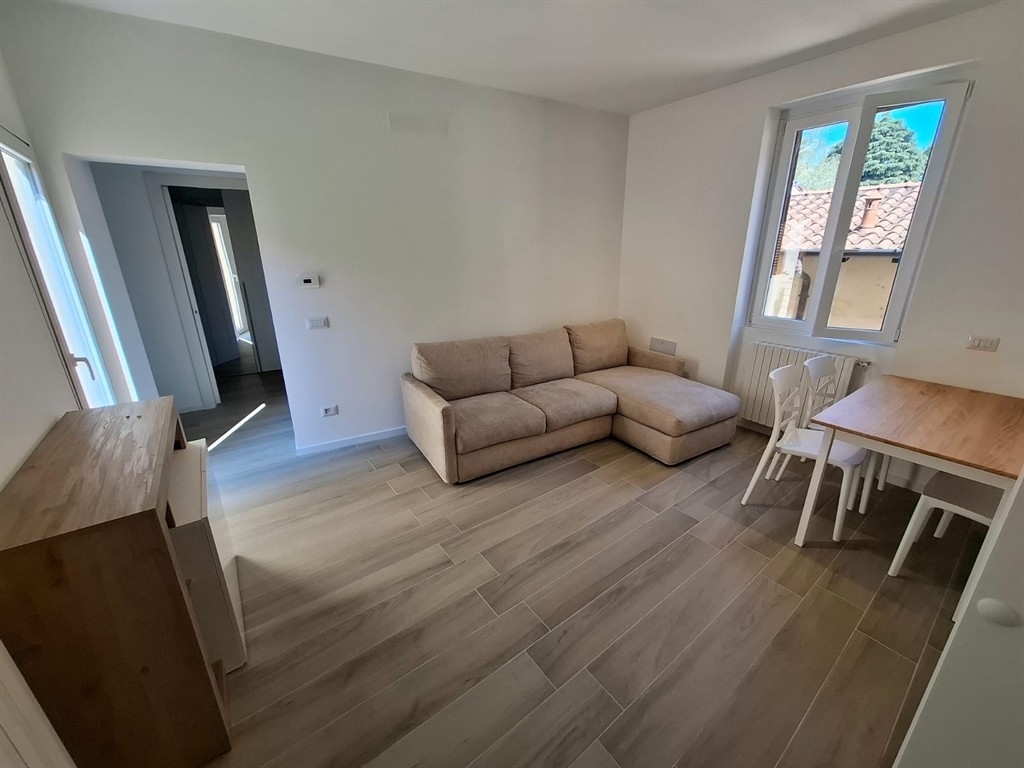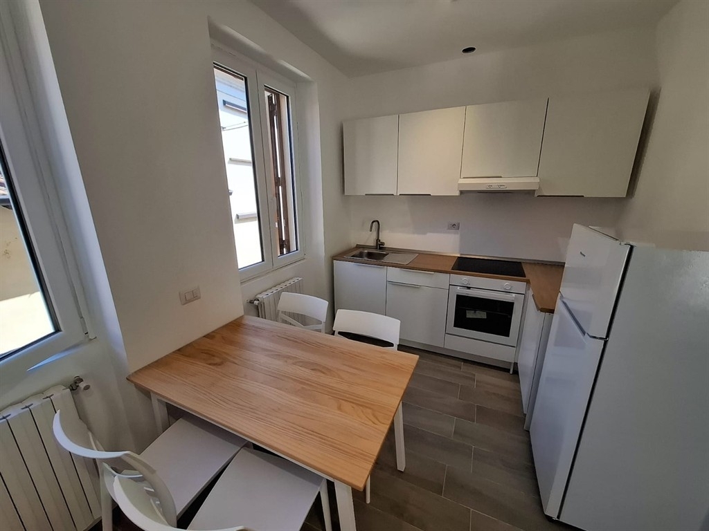 Pieno centro, a 5 minuti a piedi dalla stazione, in piccolo cortile chiuso di sole 5 famiglie, ampio 2 locali totalmente ristrutturato cosù composto: ingresso indipendente al piano terra da vano scala di proprietà che accede al piano primo dove troviamo soggiorno e angolo cottura con il balcone, una camera da letto e il bagno. Porzione di solaio uso deposito con accesso tramite botola dal bagno. L'appartamento viene consegnato completamente arredato. No box e no posto auto. rifiniture: gress porcellanato ovunque, serramenti in pvc bianchi con apertura a ribalta e persiane in alluminio, porte in legno bianche. Caldaia a condensazione con termosifoni in ghisa e asciuga salviette in bagno. Predisposizione aria condizionata. Zero spese comuni. Tutto nuovo. Consegna immediata. nota bene: appartamento per massimo 2 persone - no animali - no affitto breve, redditi dimostrabili da lavoro a tempo indeterminato minimo di € 2.000 mensili e/o garante se inferiori, 3 mensilita' di cauzione. Cortesemente non contattateci telefonicamente ma mandateci una mail a: o tramite apposito form con l'indicazione del numero delle persone, la situazione lavorativa e i redditi dimostrabili grazie! rif. 6210