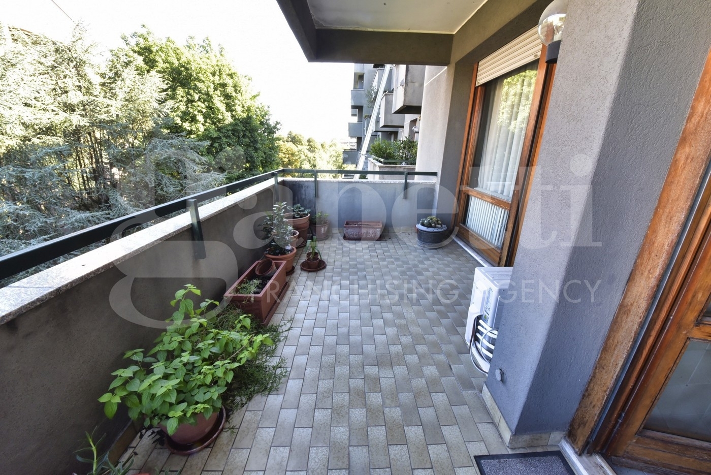 Monza/triante ? panoramica soluzione abitativa a piano alto (quinto) di circa 110 mq di superficie cosù distribuita: ingresso, soggiorno e cucina abitabile, entrambi aventi accesso al terrazzino vivibile in aggetto sul giardino condominiale, ripostiglio/guardaroba; disimpegno alla zona notte composta da due camere matrimoniali e due bagni. Un vano di cantina e un box singolo (ad euro 25.000, da aggiungere al prezzo della compravendita) completano la proposta. Libero subito. il contesto: contesto signorile immerso in un ampio e curato giardino condominiale con area giochi per bambini.la zona: triante è uno dei quartieri residenziali più ambiti della città; l?isolato in cui si trova la soluzione è molto tranquillo, ben servito da infrastrutture (scuole, centri sportivi, negozi di prossimità e supermercato), mezzi pubblici da/per il centro/stazione/sesto mm e comodo per raggiungere la ss36 da/per milano e tangenziali. Poco distante la pista ciclabile del canale villoresi (che collega il quartiere a centro-stazione-parco di monza).