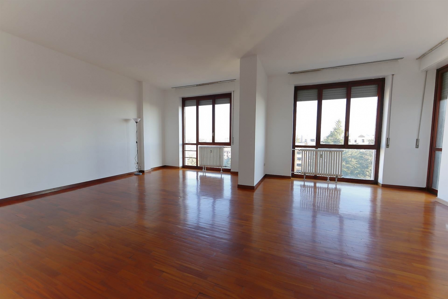 Monza centro storico, in posizione comoda per tutti i servizi e per la stazione centrale ampio trilocale, luminoso, con vista dominante panoramica sul centro di monza e sulle alpi. L'appartamento si trova al 7° piano di un edificio di 8 piani, esposto a est e ovest è composto da ingresso, salone doppio con balcone, cucina semi abitabile con balcone di servizio, ripostiglio, 2 grandi camere matrimoniali di cui una con cabina armadio ed un bagno. Vi sono diverse soluzioni per ricavare un eventuale secondo bagno. Lo stato di manutenzione generale dell'appartamento è buono e può essere abitato senza necessariamente intervenire con ristrutturazioni; la pavimentazione è in parquet massello , cucina e bagno piastrellati. Disponibile subito. e' possibile acquistare un box nello stabile confinante. classe energetica: f epi: 260,38 kwh/m2 anno