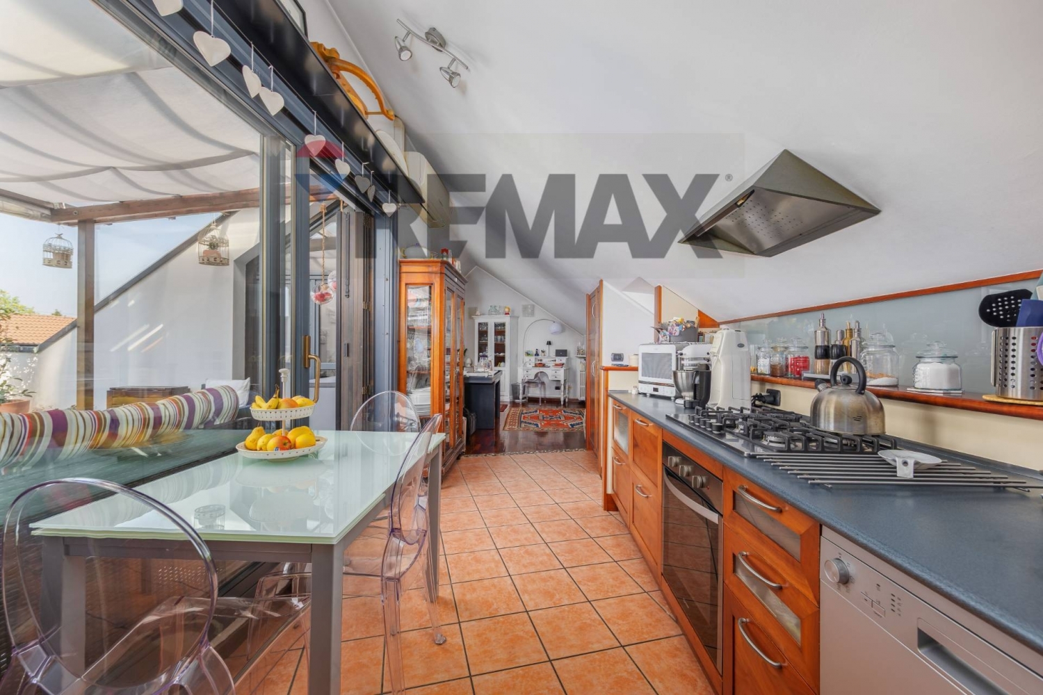 Descrizione contesto ci troviamo nel quartiere san biagio, rinomato per la sua tranquillità e la vicinanza al centro storico di monza, una delle zone più ambite della città, a pochi passi da tutti i servizi, tra cui negozi di prima necessità, supermercati, scuole e fermate del trasporto pubblico.descrizione immobileall'interno di un contesto residenziale edificato alla fine degli anni '90, proponiamo in vendita un elegante appartamento di tre locali, con una superficie di 161 mq, disposto su due livelli abitativi e accessibile sia dal secondo che dal terzo ed ultimo piano.accedendo dal piano superiore, l'ingresso conduce direttamente alla zona living, un raffinato open space mansardato caratterizzato da una cucina a vista e da un ampio soggiorno con un pratico ripostiglio, oltre a un generoso terrazzo di 30 mq, vero punto di forza dell'abitazione, ideale per momenti di relax all'aperto e per piacevoli occasioni di convivialità.una funzionale scala interna conduce alla zona notte, dove si sviluppano un disimpegno con un ampio ripostiglio, una prima camera matrimoniale con accesso al balcone, un bagno di servizio finestrato e una spaziosa camera, anch'essa con accesso al balcone, completa di una comoda cabina armadio su misura ed un elegante bagno en suite finestrato, con ulteriore sfogo esterno.a completare la proprietà, un vano di cantina ed un'autorimessa doppia di 31 mq, al prezzo di € 40.000.spese condominiali € 195 mensili.la richiesta per questa soluzione è pari ad € 450.000. descrizione finiturel'immobile si presenta in buono stato manutentivo e presenta le seguenti finiture: portoncino blindato, pavimenti in legno di iroko in tutti gli ambienti ad eccezione di cucina e bagni, che presentano pavimenti in ceramica; impianto di climatizzazione in zona giorno, serramenti in legno con doppi vetri e persiane in legno; riscaldamento autonomo, classe energetica c ep, gl nren 140.62.