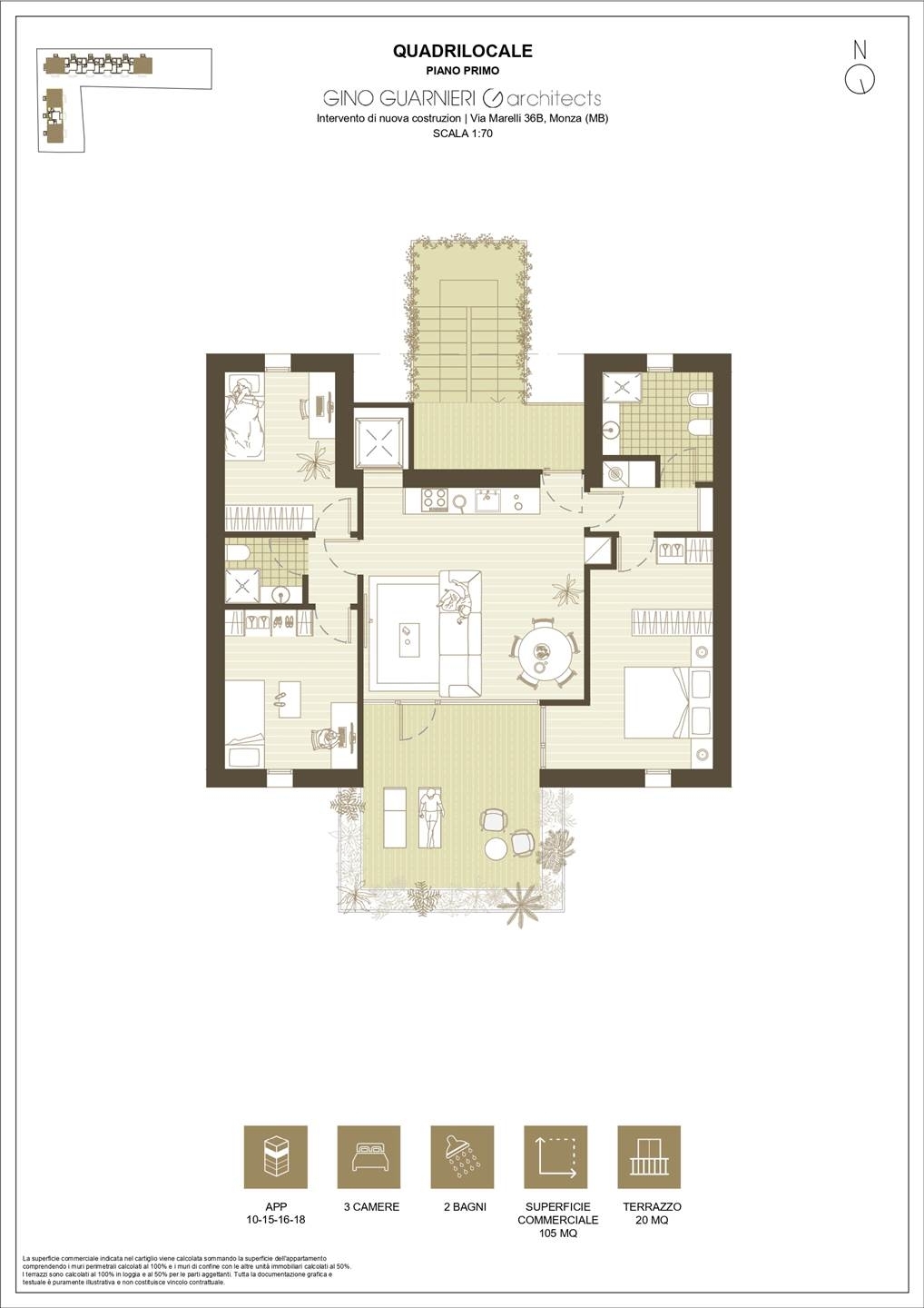 In un contesto residenziale d'eccezione, nasce un progetto architettonico unico firmato dall'architetto gino guarnieri (consegna prevista estate 2028). Poche unità esclusive dove il design contemporaneo si fonde con la sostenibilità evoluta. Non semplici case, ma residenze nzeb (near zero energy building), dove il verde non è un accessorio ma il cuore pulsante dell'abitare. Al primo piano proponiamo un signorile quadrilocale di 111, mq - a cui si accede direttamente dall'ascensore - pensato per chi cerca spazio e benessere. La zona living, ampia e luminosa con cucina a vista, si apre su un terrazzo di 20 mq che diventa un vero protagonista della zona giorno, la zona notte include una camera matrimoniale con cabina armadio e bagno privato, due ampie camere singole e un secondo servizio; nei disimpegni è studiata la collocazione di lavatrice ed asciugatrice. Tecnologia e comfort: pannelli fotovoltaici, pompe di calore individuali e materiali di altissimo pregio per il massimo risparmio energetico e il minimo impatto ambientale che si traduce in bassissimi costi di energia. prezzo box: eu. 29.000 | cantina: eu. 6.000 classe energetica: a4