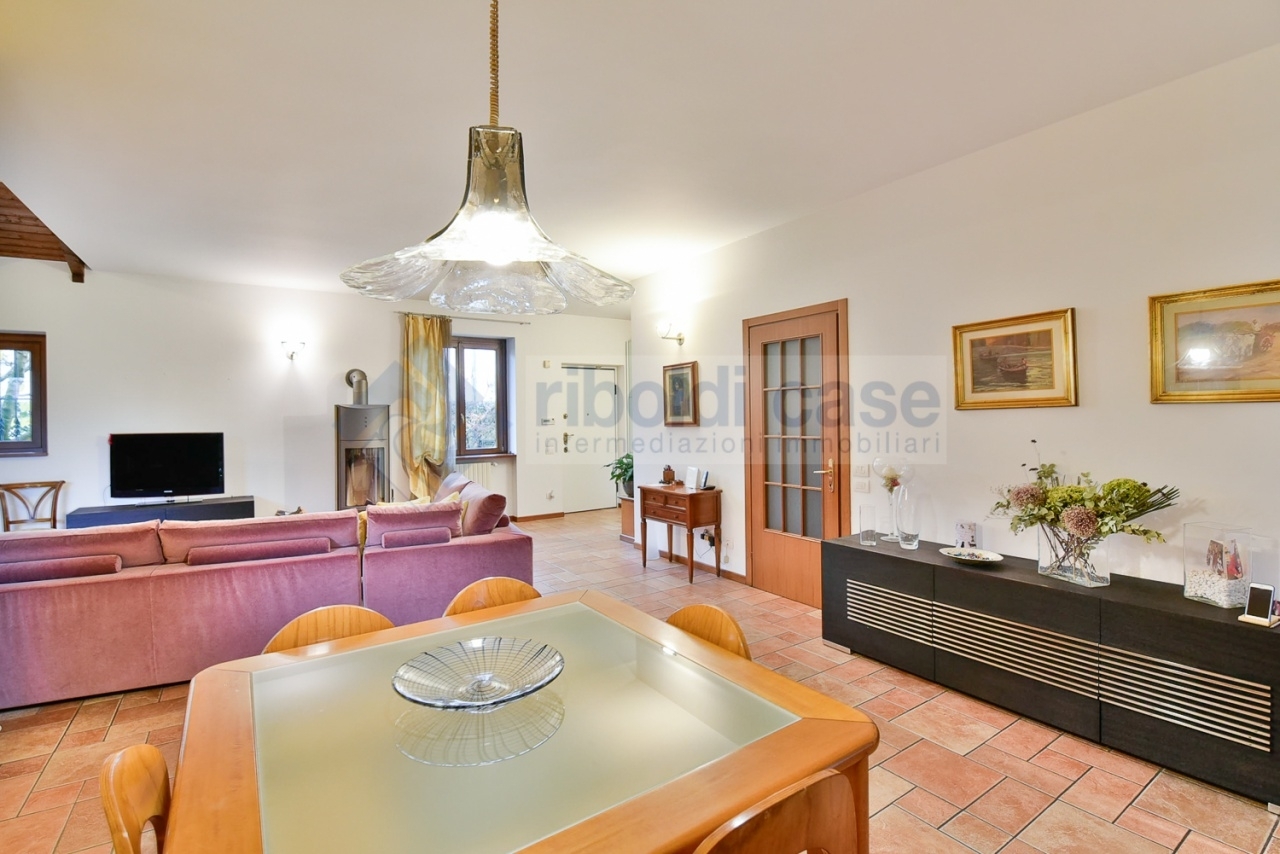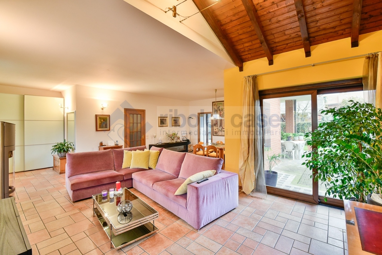 In zona residenziale proponiamo in vendita splendida villa rifinita parte mattoni a vista e parte intonaco di ca. Mq 340 totali in ottimo stato di manutenzione disposta su pi๠livelli abitativi. La soluzione à cosଠcomposta: al piano terra (ca. Mq 90) ingresso su ampio e luminoso salone, cucina abitabile, bagno; al piano primo (ca. Mq 80) si sviluppa la zona notte dove troviamo la camera matrimoniale con bagno privato, due camere da letto, altro bagno e due ampi balconi; al piano mansarda (ca. Mq 80) abbiamo un locale studio e un'ulteriore camera da letto con bagno; al piano interrato (ca. Mq 90) troviamo una spaziosa taverna con camino, cucina a induzione e bagno/lavanderia. Box doppio al piano terra (con predisposizione basculante elettrica) e giardino privato di ca. Mq 150. Ottime finiture: infissi doppi vetri, persiane in alluminio, impianto allarme volumetrico e antifurto satellitare, impianto di irrigazione. Euro 530.000 (rif. V.635) classe energetica: g - ipe: 0.00kwh/mq anno