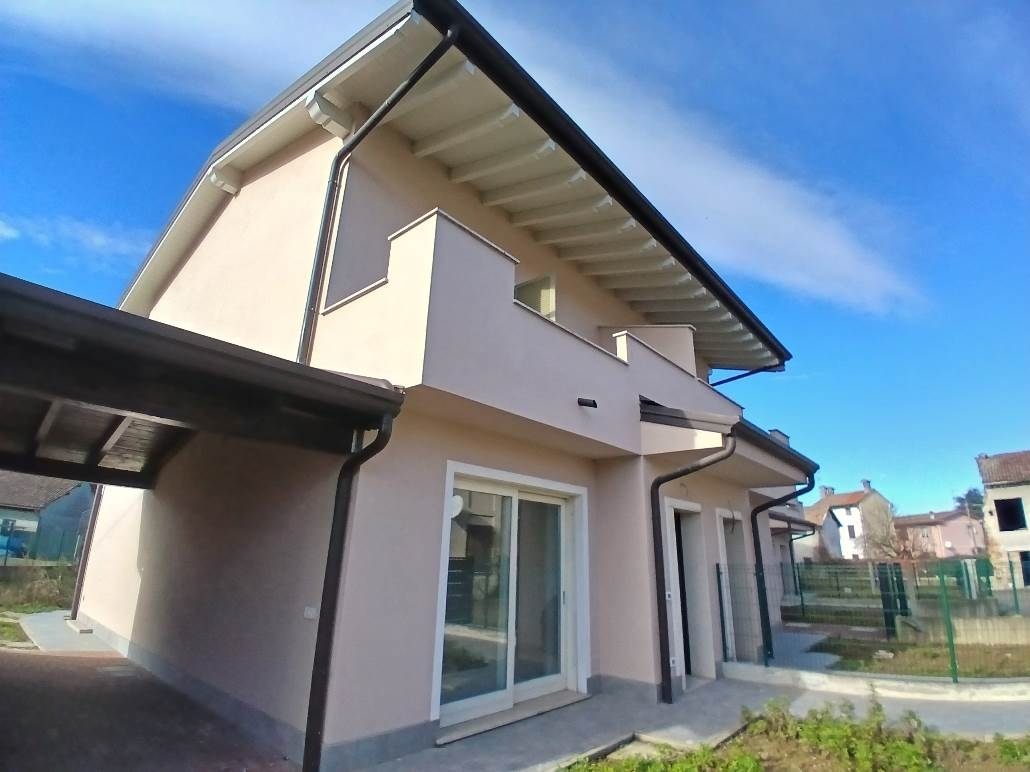 Ville di recente costruzione con porticato, giardino privato e due posti auto.la parte abitativa ( ca 103 mq) si sviluppa su due piani fuori terra con: ingresso/soggiorno, cucina abitabile con dispensa/ripostiglio, disimpegno, bagno e porticato coperto; al primo piano disimpegno, due ampie camere con soppalco, bagno e due balconi.completa la proprietà giardino privato e due posti auto.finiture : pavimenti in ceramica mono-cottura effetto parquet, serramenti con doppi e vetri zanzariere, riscaldamento a pavimento, predisposizione clima.la presente scheda non costituisce elemento contrattuale. l'indirizzo per privacy non è indicato.per maggiori informazioni e/o appuntamenti contattateci in agenzia. classe energetica: c epi: 153,18 kwh/m2 anno