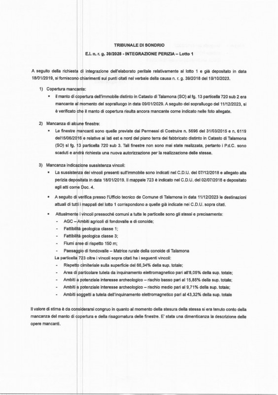 Rustico all'asta a talamona (so)una bellissima proprietà è in vendita all'asta, situata in una località affascinante. L'asta si terrà presso il tribunale di sondrio, con un'offerta minima di 200448 €. Non lasci sfuggire l'occasione di aggiudicarti questo immobile unico.il rustico a talamona via roncaiola 61 è composto da diverse parti: una stalla, un deposito per mezzi agricoli, una cantina, una sala pranzo, cucine, camere, ufficio e camere aggiuntive, oltre a un terreno agricolo. Non esitare a contattare immobiliallasta.it, società specializzata in aste e leader in italia, per ulteriori informazioni.chi siamoimmobiliallasta.it aiuta le persone a comprare casa all'asta e migliorare la qualità della loro vita senza correre rischi, grazie ad una piattaforma specializzata in aste immobiliari sviluppata intorno alle vere esigenze di chi cerca casa all'asta e ad un team di 30 professionisti esperti dedicato, che ti guida passo passo in un acquisto sicuro e certificato da una tripla garanzia sull'immobile e sul servizio.a differenza delle agenzie troverai:+ varietà: gestiamo migliaia di immobili ogni mese+ tranquillità: tripla garanzia che ti tutela da ogni rischio sull'acquistoalcuni risultati oggettivi nell'ultimo anno e mezzo:- 8.600 immobili gestiti- +500 clienti portati all'asta- +200 case aggiudicate, per un valore totale di 15 milionicontattaci subito per parlare con uno dei nostri consulenti che ti aiuterà a trovare la tua casa all'asta senza correre rischi.