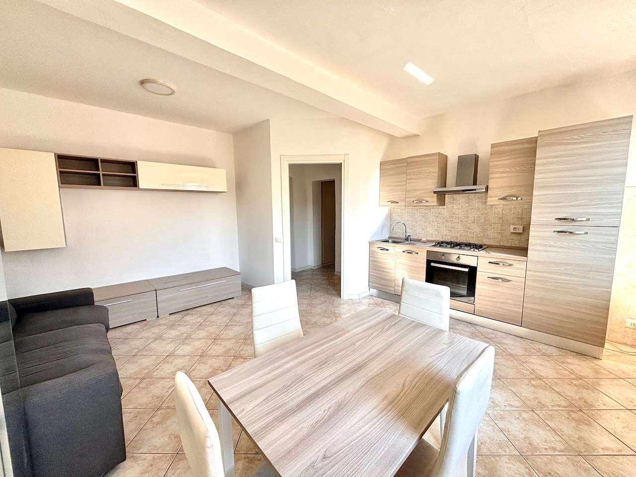 Comodo per tutti i servizi, nelle vicinanze del centro paese, proponiamo in affitto bilocale completamente arredato posto al piano primo in piccolo contesto residenziale. L'immobile al suo interno è cosi disposto; entrata nel disimpegno, soggiorno con cucina a vista, zona notte con camera da letto con balcone e bagno con doccia. Al piano terreno posto auto scoperto.classe energetica: f