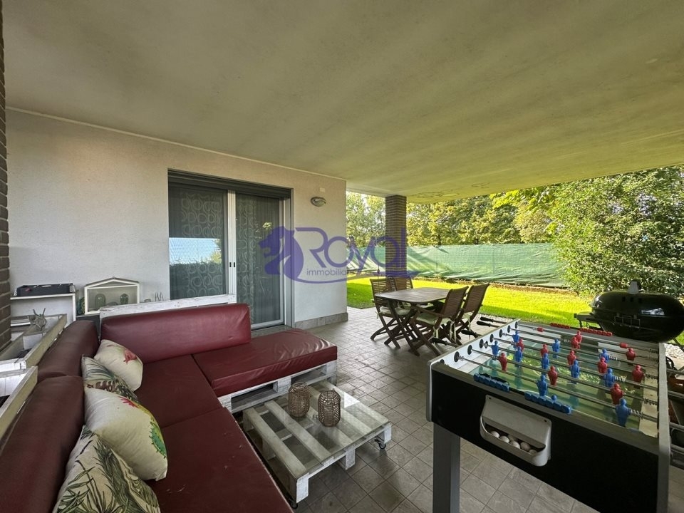 L'abitazione è posta in una signorile palazzina, dalla finiture ricercate e ricca di verde, ubicata in una bellissima zona residenziale di ultima realizzazione, tranquilla e comoda per l'ingresso autostradale o gli spostamenti con i paesi limitrofi, potendo sfruttare le vicine vie principali di collegamento! all'appartamento si accede a piedi percorrendo un gradevole vialetto condominiale, oppure direttamente dal piano garage, utilizzando il vano scala / ascensore se si parcheggia nell'autorimessa di proprietà. La casa è suddivisa in ingresso su zona living soggiorno con cucina, disimpegno con ripostiglio, doppi servizi, camera singola e camera matrimoniale con cabina armadio. L'area esterna di proprietà la fa da padrona con il giardino di ben 215 mq, dotato di ingresso di servizio indipendente da strada e porticati di ulteriori 40 mq, il tutto circonda l'appartamento che può quindi godere di ampi spazi dove potersi rilassare oppure trascorrere momenti di convivialità nella bella stagione. L'abitazione è dotata di riscaldamento a pavimento, ventilazione meccanica controllata, impianto di irrigazione, smart domotica per gestione luci e tapparelle, zanzariere, impianto di climatizzazione con pompa di calore posto nella zona living e nella camera matrimoniale (quella singola è comunque accessoriata di predisposizione), predisposizione impianto di allarme, oltre impianto fotovoltaico condominiale. Presente box singolo di generosa metratura, posto auto di proprietà e cantina. - maggiori dettagli: climatizzato, porta blindata