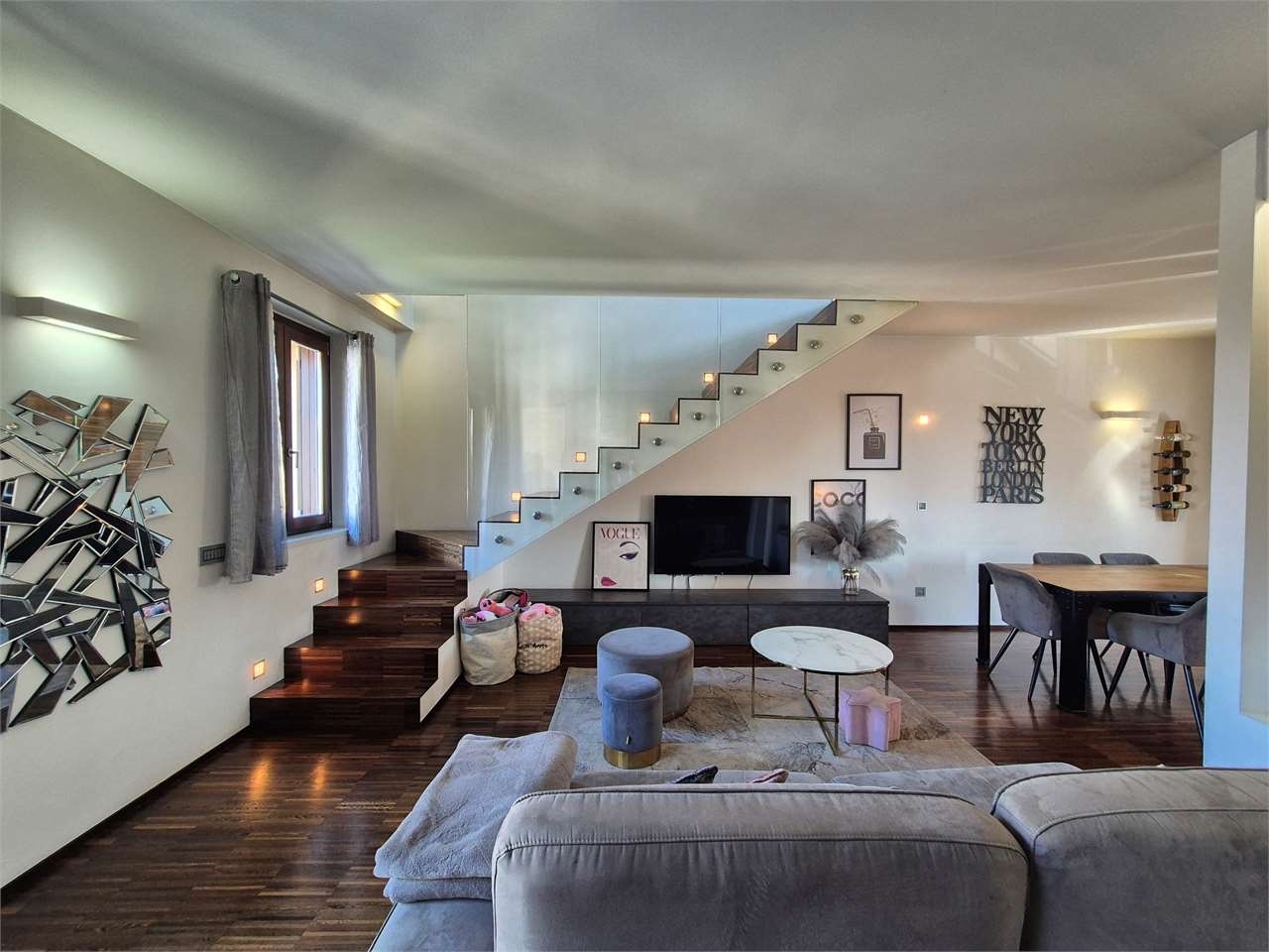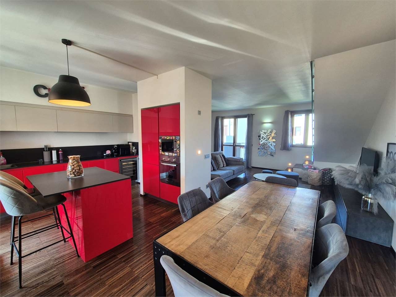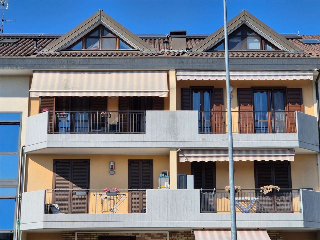 ​in un curato contesto residenziale edificato nel 2014, proponiamo in vendita un luminoso appartamento disposto su due livelli, situato al secondo e ultimo piano e comodamente servito da ascensore. L'abitazione si sviluppa su una superficie di circa 140 mq e gode di una privilegiata doppia esposizione est-ovest, che garantisce ambienti ariosi e luce naturale durante tutto l'arco della giornata.​l'ingresso principale avviene tramite un portoncino blindato che immette in un soggiorno spazioso e accogliente, caratterizzato da una moderna cucina a vista e dall'affaccio su due balconi. Il piano è completato da un funzionale e ampio ripostiglio e da un primo bagno rifinito con doccia. Una comoda scala interna conduce al piano superiore, dove veniamo accolti da un generoso openspace ideale come locale hobby o zona relax, affiancato da ulteriori due locali separati e da un secondo servizio, offrendo cosù una distribuzione degli spazi versatile e ben organizzata.​l'immobile si distingue per l'alto livello delle dotazioni tecnologiche e del comfort abitativo. Il riscaldamento è a pavimento con caldaia centralizzata e termovalvole, gestito in totale autonomia grazie a due termostati separati per i due piani. La proprietà è inoltre arricchita da un impianto di filodiffusione presente in ogni stanza, aria condizionata nella zona notte, zanzariere su tutti gli infissi e tende da sole elettriche. La sicurezza e la praticità sono garantite dalla predisposizione per l'antifurto, dal videocitofono anche al piano superiore e dalla serranda del box completamente automatizzata.​completano la proposta una rara dotazione di pertinenze, che comprende ben tre cantine e un'autorimessa doppia in lunghezza con basculante elettrica. Le spese condominiali, pari a circa €180 mensili (escluso il riscaldamento), assicurano una gestione impeccabile dello stabile: oltre alle voci ordinarie come amministratore, assicurazione e pulizia degli spazi comuni, è incluso un prezioso servizio di movimentazione dei bidoni dei rifiuti effettuato tre volte a settimana, un dettaglio che semplifica notevolmente la gestione quotidiana.​una soluzione abitativa moderna, completa di ogni accessorio e pronta per essere vissuta.classe energetica: b