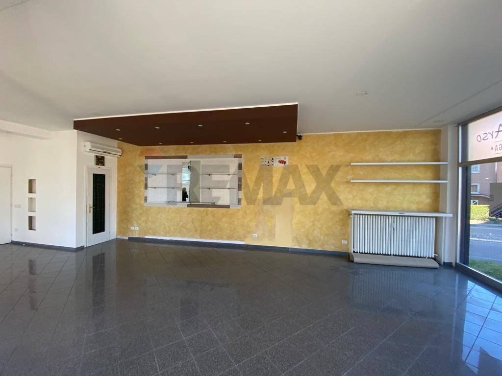 Ampio negozio con vetrate ,in posizione di forte passaggio , zona centrale vicino alla diramazione, per l'accesso agli aeroporti di malpensa, con sei ampie vetrate ; luminisissimo.open space divisibile, provvisto d' impianto di aria condizionata, doppi servizi igienici, a norma. Ristrutturato di recente, abbassamento con faretti. Pavimenti in gres lucidi; finiture di pregio; riscaldamento a norma, termoautonomo con pompe di calore . Doppio accesso(anche sul lato stradale e pedonale). l' ampio spazio a disposizione, risulta adatto per svariate attivita' : parcheggio su due lati , eventuale possibilita' di utilizzare il lato giardino esterno comunale come dehor . Anche uso ufficio, libero subito.
