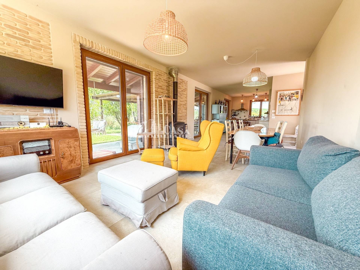 Splendidia villa, a 10 km dalla spiaggia di san benedetto del tronto (ap), 11 km dalla spiaggia di martinsicuro (te), 17 km dal centro storico di ascoli piceno (ap) e con nelle vicinanze il borgo di monsampolo del tronto, il borgo medievale di monteprandone, il borgo di acquaviva picena.villa completamente ristrutturata su due piani all'interno di parco di 2500 mq completamente a giardino ben curato con vasca idromassaggio con cascata. Piano terra con zona giorno completa di un ampio soggiorno con angolo cottura open space e divano letto matrimoniale, ampio porticato completo ed attrezzato, bagno con doccia, piano primo con accesso da scala esterna tipica delle stile marchigiano con tre ampie camere da letto tutte matrimoniali di cui una con terzo letto e balcone e due bagni entrambi con doccia e finestrati.il parco è completamente recintato, il giardino ben curato, ideale per chi desidera trascorrere una vacanza all'insegna del relax in aperta campagna o per una residenza per tutto l'anno. Parcheggio auto all'interno della proprietà per una o più automobili. La villa è completamente ristrutturata con rifiniture moderne internamente ed esternamente con finiture tipiche dei casali con mattoncino originale a faccia vista. Presente anche una vasca originariamente utllizzata per il recupero delle acque piovane ed oggi come acquario per carpe e pesci rossi.rifinita con pavimentazione in gres porcellanato, infissi in legno con doppio vetro, persiane in legno, zanzariere, impianto di riscaldamento a pavimento con pompa di calore, impianto di condizionamento, predisposizione per impiano fotolvoltaico. Bagni con sanitari sospesi e box in cristallo.la villa viene venduta arredata come vista con mobilia di ottima fattura e su misura.completa la proprietà un terreno agricolo circostamte l'abitazione per complessivi 7 ettari con frumento, piante di ulivo, piante da frutto.