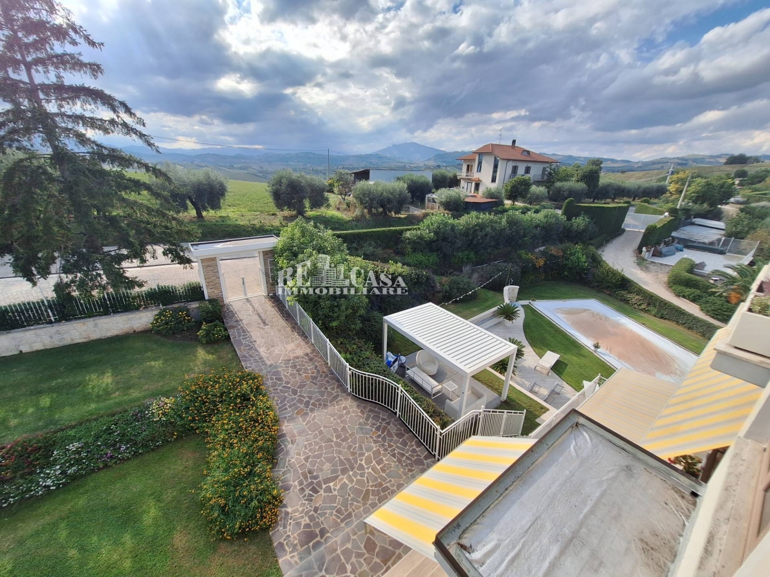 L'agenzia re casa immobiliare propone in vendita, villa indipendente, nelle marche nel comune di offida (ap), zona collinare, vista panoramica sulle colline circostanti, a 5 km dall'antico borgo di offida, e 5 km dalle principali vie di comunicazione.l'immobile è completamente indipendente, completamente recintata. Con corte di 1.000 mq circa, in parte pavimentata, e giardino con piscina attrezzata, posti auto esterni, disposta su cinque livelli per complessivi mq 637 mq, esposizione sud, est, ovest e nord.piano seminterrato di mq 145: composto da ampia rimessa, cantina, ampio rustico attrezzato, fondaco e lavanderia, bagno con doccia, ampio porticato lato piscina.piano terra rialzato di mq 145: si accede tramite comoda scala interna in granito, divisibile in due bilocali, ciascuno è composto da ampio soggiorno e cucina a vista, una camera matrimoniale, bagno con finestra, gres porcellanato su tutta la superficie, finestre in alluminio con doppio vetro e persiane in alluminio;piano primo di mq 145, si accede tramite scala intera, composto da tre camere, due matrimoniali ed una doppia, due bagni con finestra, uno con doccia ed uno con vasca, pavimentazione delle camere in parquet, piastrelle nel bagni, gres porcellanato, infissi in alluminio con doppio vetro, balconi per complessivi 37 mq, perimetrali e con vista panoramica;piano secondo di mq 145: si accede tramite scala intera, composto da tre camere, due matrimoniali ed una doppia, due bagni con finestra, uno con doccia ed uno con vasca, pavimentazione delle camere in parquet, piastrelle nel bagni, gres porcellanato, infissi in alluminio con doppio vetro, balconi per complessivi 37 mq, perimetrali e con vista panoramica;piano sottotetto di mq 145: ampio locale di sgombero, con altezza minima di mt 1.50, max mt 2.80il riscaldamento è autonomo ed alimentata da termosifoni con impianto a metano, termosifoni in ghisa.completano la proprietà, una corte di 1.000 mq, interamente recintata, in parte pavimentata a mattoni, altra a prato, ideale ad ospitare animali domestici e da cortile, ampia piscina attrezzata, zona confort-relax, oltre una struttura magazzino, adibita ad ospitare tre garage con serranda motorizzata.possibilità di acquistare a parte, terreni agricoli di 27.000 mq, con esposizione est, seminativo con presenza di piante ulivi, alberi da frutto e vigneto.l'immobile, realizzato negli anni 80, è in ottime condizioni generali, sia esterne che interne, abitabile da subito, ed è ideale per ospitare famiglie numerose, o nuclei plurifamiliari, in un contesto silenzioso e riservato, a pochi metri dai servizi presenti nel centro di offida, equidistante dal mare e dalla montagna, in un contesto residenziale silenzioso, panoramico, e riservato.