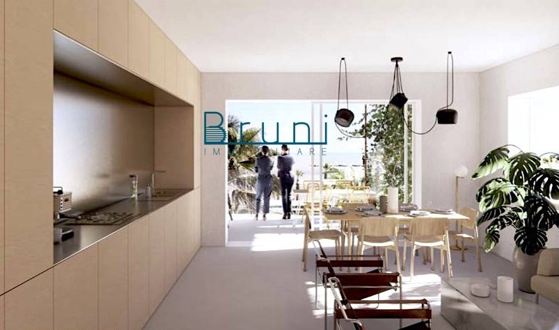 Agenzia bruni immobiliare propone: appartamento di nuova costruzione esposizione nord/est in vendita in prima fila mare nelle marche, in provincia di ascoli piceno nel comune di san benedetto del tronto, di circa 78 mq posto al piano rialzato di cinque.composto da: ingresso su ampio soggiorno con cucina a vista, due camere da letto di matrimoniali, due bagni ad areazione forzata con cabina doccia, oltre a terrazzo abitabile di circa 15 mq e balconi di circa 29 mq.l'immobile presenta delle ottime finiture ed innovazioni tecnologiche necessarie per ottenere la più alta classe energetica quali: cappotto esterno, impianto a pompa di calore caldo/freddo tramite split, impianto radiante a pavimento, predisposizione allarme, infissi in alluminio con vetrocamera, finiture a scelta da capitolato. possibilità di posti auto da computare a parte.