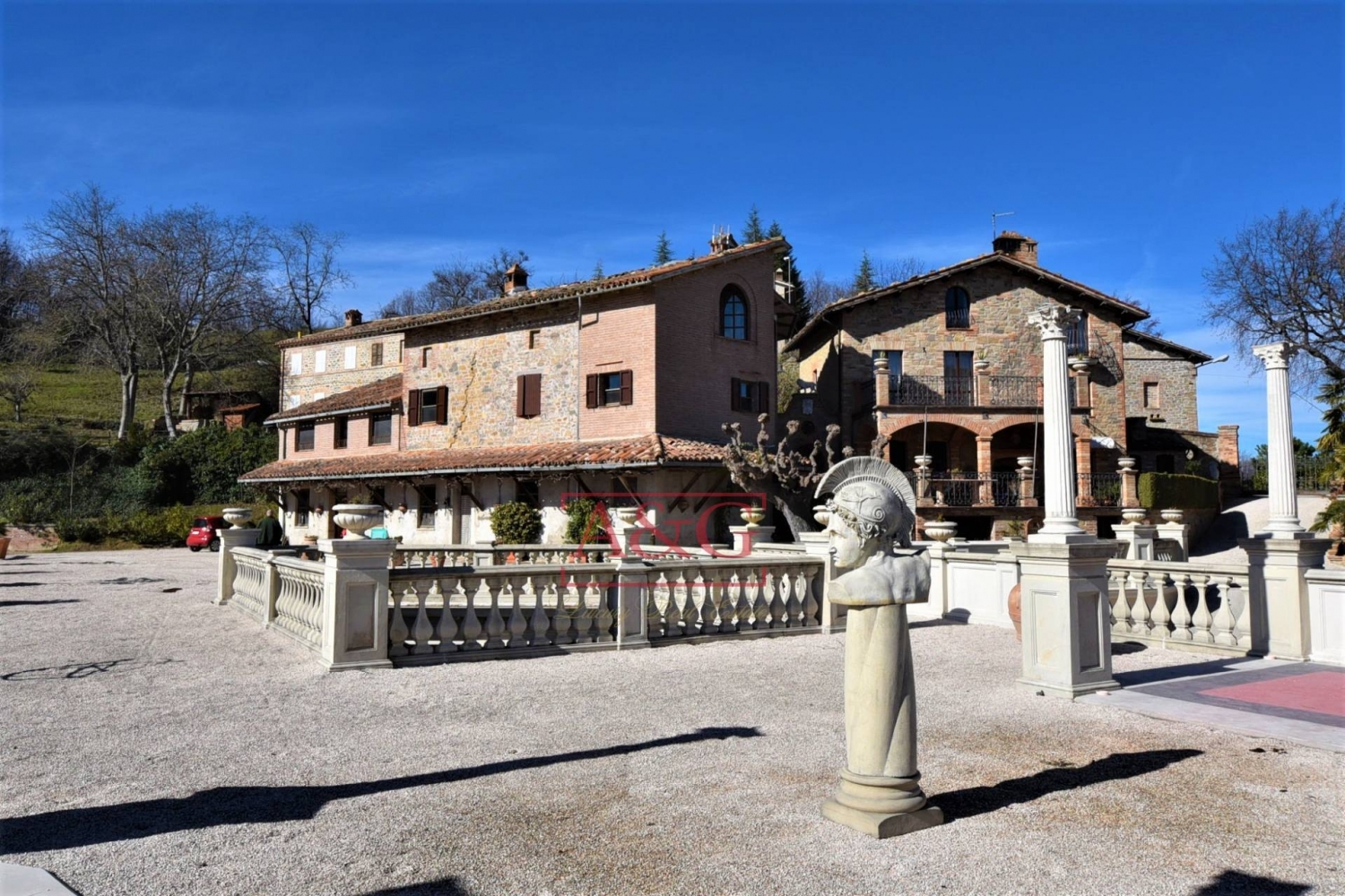 Villa padronale 'bellavista' con dependence, e complesso in corso di costruzioni con piscina e spa, con parco e terreno annesso di circa 15.000 mq.+ vecchio fabbricato, vendesi a montefortino, fermo, marche, italia.la proprietà è costituita da una villa padronale in ottimo stato, di due dependence ottimamente ristrutturate, due rustici,da un complesso a destinazione ricettiva di 9 appartamenti, spa e rimessa automezzi; è situata nell'agro del comune di montefortino(fm) e posta a 3 km ad est del capoluogo a 630m di altitudine.il contrasto è quello tipico collinare delle marche, trasformatosi nel corso degli anni, passando dalle campagne arate e i seminativi degli anni 60 ai boschi e radure di oggi, con il risultato che dal verde spuntano qua e la i paesi, le frazioni e, come nel caso di specie i borghi incastonati come gemme carichi della ricchezza della storia e delle tradizioni popolari.si è immediatamente a ridosso del parco nazionale dei monti sibillini, con il corollario delle vette che lo compongono: castel manardo, priora, sibilla e vettore, a poca distanza anche del santuario della madonna dell'ambro, meta irrinunciabili per ogni turista che frequenta questi territori, tutti raggiungibili in un quarto d'ora , a poca distanza si trovano comuni più importanti di di amandola e comunanza.inquadramento urbanistico - l'intero contesto ricade, nel vigente prg del comune di montefortino, in zona agricola fatto salvo il nucleo edificato classificato come zona b2 di 'completamento estensivo', con indice di fabbricabilità fondiaria pari a 1 mc/mq.la proprietà ha utilizzato tale indice per una percentuale di circa il 90% finalizzata alla realizzazione di un complesso di tipo turistico residenziale, già autorizzato dal comune, e i cui lavori sono in corso di esecuzione.la rimanete quota del 10% potrà essere usata per eventuali futuri ampliamenti o accorpamenti dell'edificato, a seconda delle destinazioni da dare all'immobile.la destinazione urbanistica b2 prevede la realizzazione di interventi prevalentemente di tipo residenziale, è consentita, tuttavia, anche la realizzazione di strutture di tipo turistico ricettivo con cambio di destinazione d'uso e reperimento delle aree a standard, che, nel caso in esame, sono ampiamente disponibili.le distanze dai confini debbono rispettare le quote minime di 5mt e cosù pure per le strade e 10mt dalle costruzioni. La lunghezza massima delle fronti degli edifici non deve superare mt 30 di lunghezza e i mt 8,5 di altezza massima, il numero dei piani è limitato a tre.descrizione dei terreni agricoli - i terreni facente parte del complesso, con corte delle porzioni edificate, hanno un'estensione di circa 15.000 mq., esposti a sud-est e aperti sul versante collinare dell'area pedomontana dei monti sibillini. Tutta l'estensione aziendale è in un unico corpo attraversato sulla parte ovest dalla strada comunale che collega le strade provinciali per montefortino e per amandola, e che costituisce la unica via di accesso a tutta la proprietà.descrizione degli edifici - il complesso dell'edificato si articola su cinque diversi corpi di fabbrica, identificati da a ad e, gli stessi sono serviti dalla viabilità interna che nella parte più antica è perfettamente sistemata, mentre nella parte in corso di costruzione è ancora ad uso cantieristico ma comunque perfettamente percorribile da ogni mezzo.edificio a - si presenta con tre distinti corpi, dei quali quello centrale è il più antico, con murature in pietra arenaria originali, al quale sono stati aggiunti ad est (tre piani) e a ovest (due piani) due ampliamenti parte in mattoni a vista e parte con intonaco, con tettoia perimetrale sul lato sud. Su questo edificio è ubicata la residenza padronale, con notevole caratterizzazione derivante sia dalle finiture interne con pavimenti e scale in legno, soffitti decorati e finiture molto gradevoli nella loro particolarità. Gli infissi sono in legno...