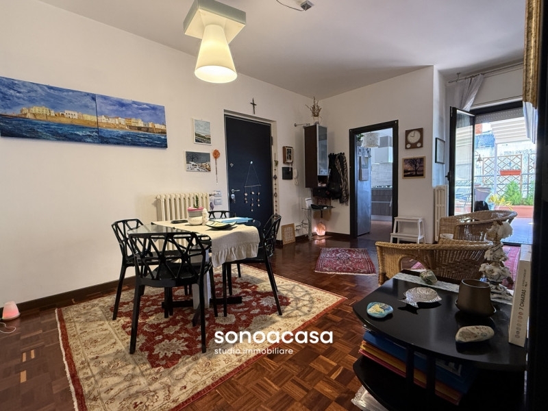 A fano, zona flaminio, l'agenzia sonoacasa studio immobiliare propone in vendita esclusivo appartamento in zona residenziale e servitissima, a pochi passi dal centro. La soluzione si trova al terzo piano di un edificio condominiale, servito da ascensore, in ottimo stato di manutenzione: si compone di cucina abitabile, grande zona giorno, con accesso alla meravigliosa terrazza panoramica, vero plus di questa soluzione abitativa unica. La terrazza ha una favorevole esposizione, riparata dal vento e soleggiata, ed in parte coperta, tale da renderla perfettamente utilizzabile per la maggior parte dell'anno. Qui potrai trascorrere non solo momenti di relax ma pranzi e cene all'aperto, immergendoti in una vera oasi di benessere. La zona notte si compone di disimpegno con armadi a muro, camera matrimoniale e cameretta, entrambe con accesso ad un balcone, e doppi servizi. E' presente parquet in tutta l'abitazione, ad eccezione della cucina e dei bagni, infissi e porte sono stati sostituiti alcuni anni fa, cosù come l'impianto elettrico. E' compreso nella vendita il posto auto coperto esclusivo nel seminterrato, nonché piccola cantina al piano terra. benvenuto in un nuovo concetto di consulenza immobiliare. Sono elisabetta, titolare & legal specialist dell'agenzia sonoacasa studio immobiliare: un team di sole donne, professioniste e con specifiche competenze, che ti guiderà nella ricerca del luogo in cui 'essere a casa'. Per questa o altre soluzioni, contattaci telefonicamente oppure passa a trovarci: siamo a marotta, in via litoranea 154.