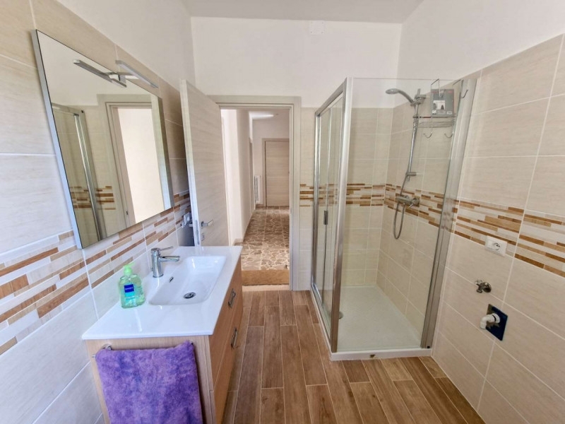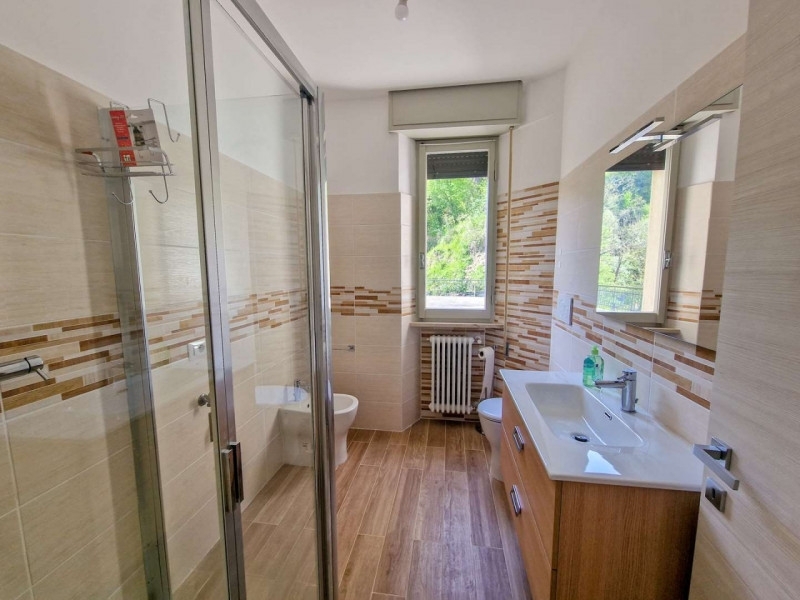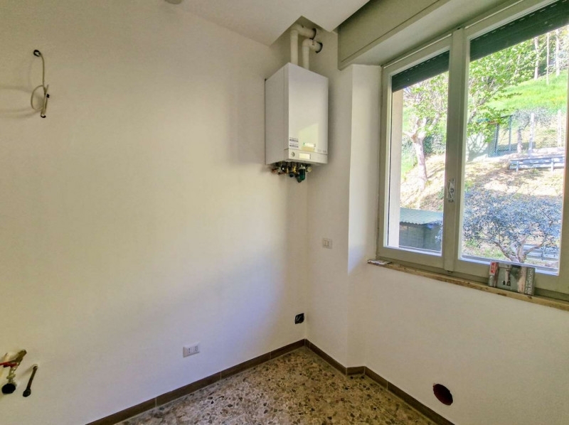 Vendesi appartamento appena ristrutturato sito al primo piano di una villetta bifamiliare a macerata feltria. La proprietà si trova adiacente al centro abitato di macerata, distante pochissime centinaia di metri, all'imbocco tra via dei romani e via europa.l'accesso all'abitazione avviene mediante ingresso e vano scala condiviso con l'abitazione posta al piano secondo. Il portone si affaccia su un disimpegno centrale che fornisce l'accesso a tutte le stanze del piano. Sulla destra troviamo la sala da pranzo con camino, accesso ad un balcone sul retro ed al cucinotto; sulla sinistra si raggiunge invece il soggiorno, anch'esso con accesso ad un balcone.percorrendo il disimpegno troviamo il bagno, ai cui lati sono posizionate due ampie e luminose camere da letto.sul lato dell'abitazione, accessibile dalle camere da letto, si sviluppa un'ampia terrazza di proprietà da quasi 200 mq di superficie.a servizio dell'appartamento è presente inoltre un garage coperto posto al piano terra ed accessibile direttamente dalla sede stradale. Sul retro dell'abitazione si sviluppa un piccolo scoperto privato di circa 120 mq.all'interno dei recenti lavori che hanno coinvolto l'appartamento è stato completamente rinnovato l'impianto di riscaldamento, in particolare sono stati sostituiti i vecchi radiatori ed è stata installata una caldaia a condensazione di nuova generazione oltre alla predisposizione per l'aria condizionata.
