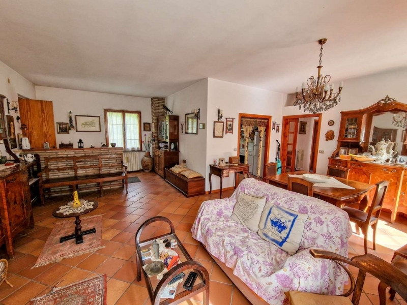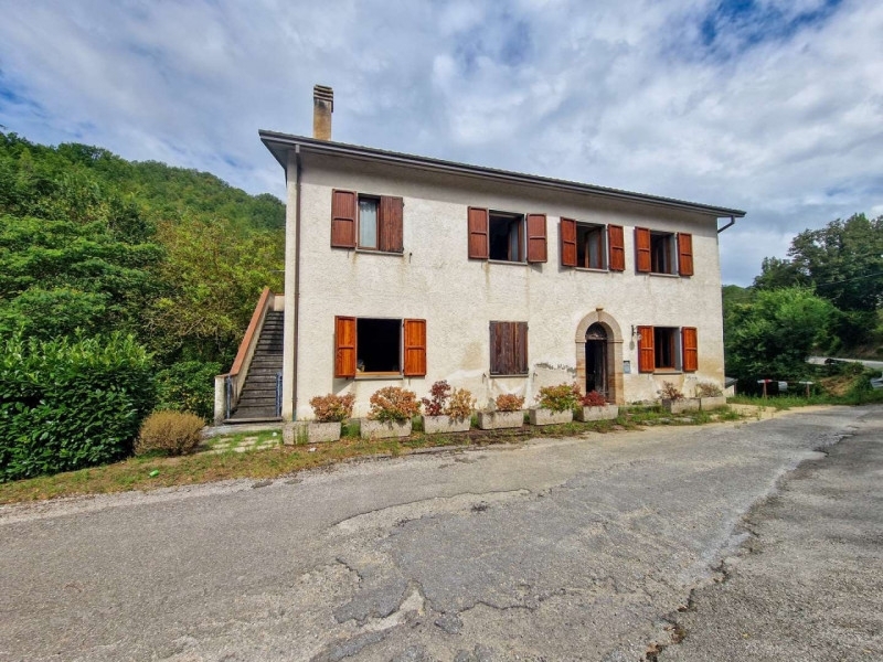 Situato alle porte di macerata feltria, vendesi casale indipendente con scoperto privato adiacente. La proprietà è posizionata lungo la strada provinciale che dal capoluogo maceratino, distante appena un chilometro, conduce verso monte cerignone e la valle del conca. L'ingresso si affaccia verso la strada provinciale, tuttavia tra l'abitazione e la sede stradale è presente un tratto appartenente al vecchio percorso che crea una zona 'cuscinetto' e permette un più comodo accesso alla proprietà.l'abitazione si sviluppa al piano primo su una superficie di circa 95 mq ed è accessibile mediante scala esterna laterale ad uso esclusivo. L'ingresso si affaccia su un'ampia zona giorno open space con camino in muratura e doppia apertura finestrata sul fronte dell'edificio. Accanto al soggiorno troviamo la cucina/sala da pranzo. Una porta a vetro separa la zona notte, quest'ultima si sviluppa attorno ad un disimpegno centrale e si compone di due camere da letto, di una terza cameretta (utilizzabile anche come studio) e di un ampio bagno.al piano terreno è presente un grande spazio, attualmente allo stato grezzo, utilizzabile come abitazione. L'unità posta al piano terra ricalca la sagoma dell'appartamento posto al piano superiore ed è accessibile mediante portone autonomo posto centralmente rispetto alla facciata frontale dell'edificio.all'interno della proprietà anche un ampio spazio posto al piano primo sottostrada con accesso dallo scoperto privato. I locali presenti a questo livello si sviluppano su una superficie ben più ampia rispetto a quella dell'abitazione e si trovano attualmente allo stato grezzo. L'accesso al piano avviene mediante portone pedonale posto su un fianco dell'edificio e raggiungibile da una breve rampa di scale oppure da coppia di portoni multiuso posizionati sul fianco opposto. I vani presenti ben si prestano ad essere utilizzati come autorimessa, laboratorio, magazzino, legnaia o ricovero attrezzi. Sono inoltre presenti ulteriori locali posti al piano secondo seminterrato ed accessibili da portone multiuso sul retro dallo scoperto privato.sui fianchi e sul retro dell'abitazione troviamo un ampio scoperto, principalmente a prato, che si sviluppa su una superficie di circa 5000 mq su più livelli.