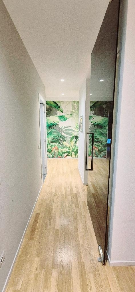 l'immobile gode di grande luminosità ed è ubicato al secondo piano con ascensore in signorile contesto condominiale, cosù composto: ingresso, grande soggiorno con balcone e ampia cucina con isola centrale open space (possibilità di dividere gli ambienti della zona giorno e zona notte tramite elegantissime porte scorrevoli e non di vetro fumè), doppio corridoio arredato con preziosa carta da parati jungle, 4 camere da letto di cui una matrimoniale (tutte quattro le camere affacciano nel grande terrazzo che le collega), 2 grandi bagni finestrati, una lavanderia finestrata e un ampio ripostiglio sempre finestrato, completano la proprietà due cantine esclusive al piano interrato.