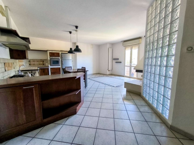 All'interno del centro di piandimeleto vendesi appartamento sito al terzo piano di una palazzina condominiale posta adiacente ai giardini pubblici. La proprietà è posizionata a cavallo tra via ladavac e via maioli, all'interno del nucleo urbano di piandimeleto, a due passi da tutti i servizi essenziali.l'appartamento si trova al piano terzo ed è raggiungibile sia dal luminoso vano scala comune caratterizzato da una parete vetrata, sia mediante ascensore interno. L'ingresso conduce ad un ampio open space comprendente soggiorno e cucina in muratura con penisola ed impreziosito da una parete in vetrocemento, dal camino in muratura e dall'accesso ad un balcone affacciato sul retro della palazzina. Sul lato della zona giorno troviamo un primo disimpegno attrezzato con un armadio a muro.la zona notte si sviluppa attorno ad un secondo disimpegno e si compone della camera padronale con balconcino privato, di una seconda stanza utilizzabile sia come camera che come studio e dell'elegante bagno.all'interno della proprietà anche un box auto coperto posto al piano seminterrato collegato internamento dal vano scala condominiale con ascensore e raggiungibile da rampa carrabile posta sul retro lungo via ladavac.l'unità, riscaldata da caldaia autonoma e dotata di infissi aventi un buon taglio termico, si trova in buono stato di manutenzione ed è fin da subito abitabile.
