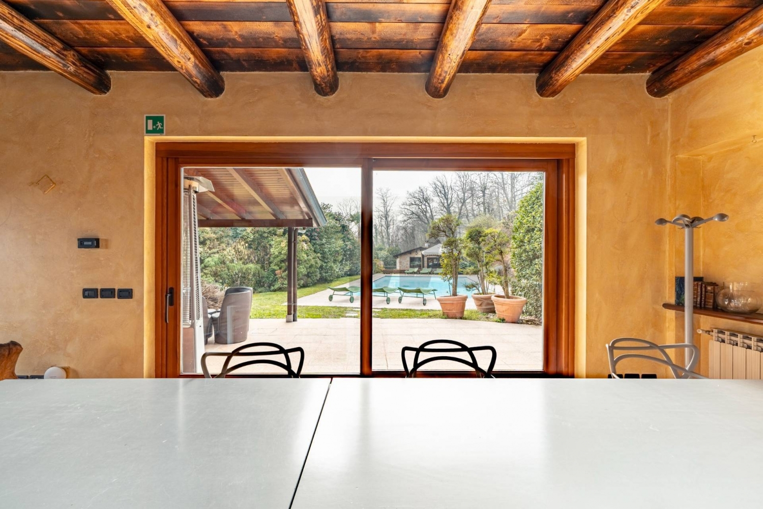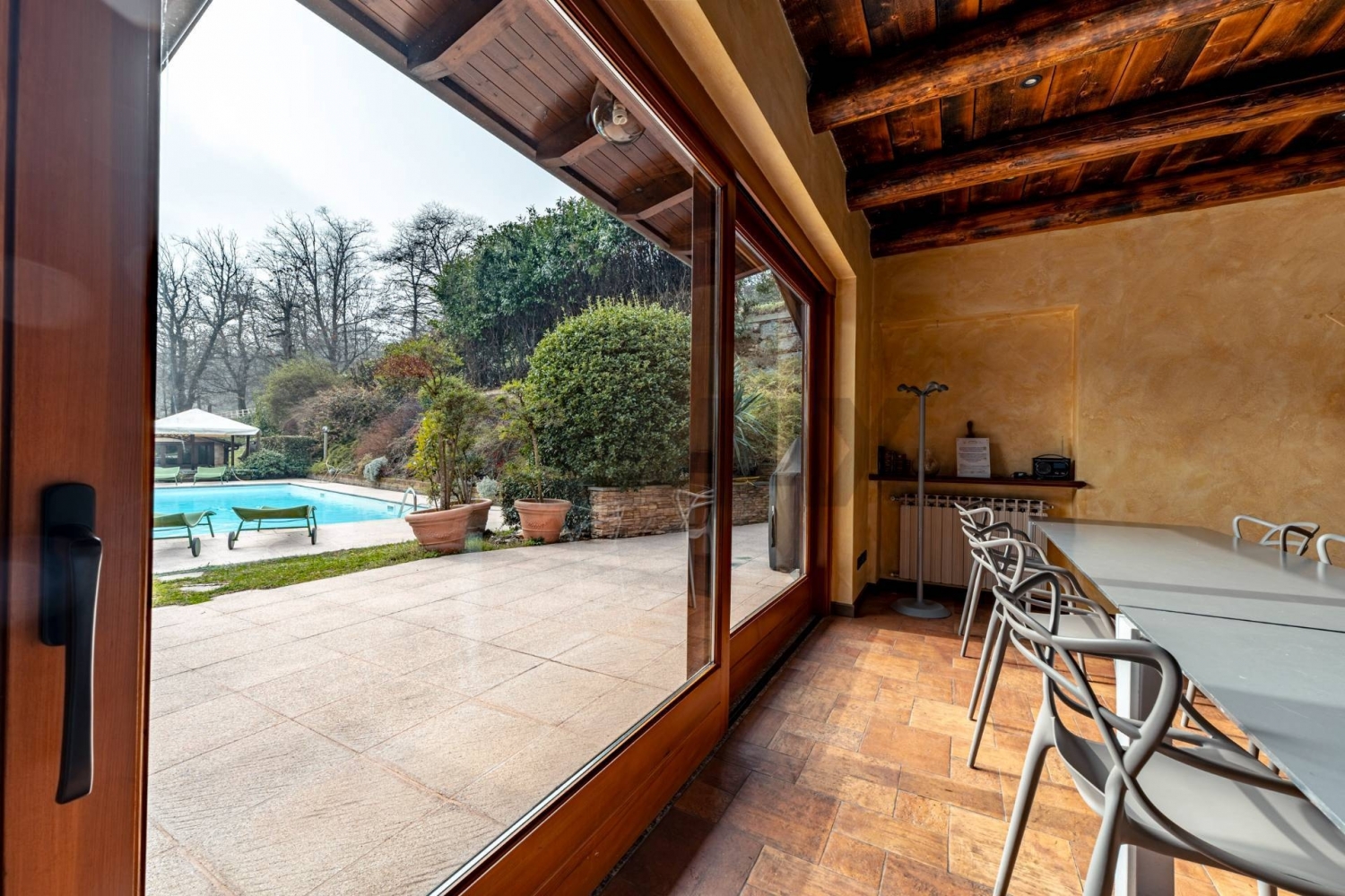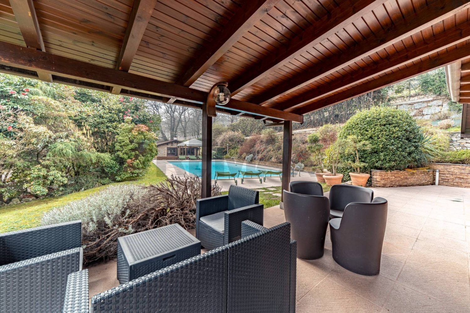 Prestigiosa proprietà con villa, dependance e struttura ippica su ampio terrenoimmersa nel verde e nella tranquillità, proponiamo in vendita una splendida proprietà che si estende su circa 2 ettari di terreno, in parte boschivo e in parte destinato a paddock, ideale per gli amanti della natura e dell'equitazione.la parte abitativa principale è costituita da una villa di circa 300 mq distribuita su due livelli, impreziosita da un ampio porticato coperto e affacci panoramici sulla piscina.al piano terra troviamo una luminosa cucina americana aperta sulla sala da pranzo con vista piscina, un salone di generose dimensioni attualmente adibito a sala riunioni e home cinema, oltre a due bagni, di cui uno dotato di vasca idromassaggio.il primo piano ospita un grande salone con camino e accesso al balcone, quattro spaziose camere matrimoniali e un ulteriore bagno con vasca idromassaggio.dal porticato si accede a un pratico locale ad uso spogliatoio per la piscina, completo di bagno.di fronte alla piscina si sviluppa una dependance indipendente composta da un ampio soggiorno con camino e angolo cottura, due camere matrimoniali e due bagni, uno dei quali con vasca idromassaggio.la proprietà è completata da una struttura ippica ben organizzata, composta da 12 box per cavalli (3x3 m) con tettoia frontale adibita a zona lavaggio e selleria. In testata alla scuderia è presente un comodo bilocale per il groom.presente inoltre un maneggio coperto di 20x40 m con cavallerizza e tribuna, oltre a ulteriori coperture destinate a posti auto e ricovero mezzi agricoli.completa la proprietà un impianto fotovoltaico installato sul tetto, che contribuisce all'efficienza energetica dell'intero complesso.