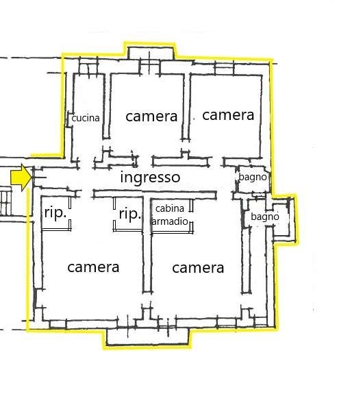 Pinerolo centro storico in palazzo d'epoca piano secondo ingresso, quattro ampie camere, cucina, doppi servizi, cantina e locale sottotetto deposito.classe energetica: in fase di valutazione