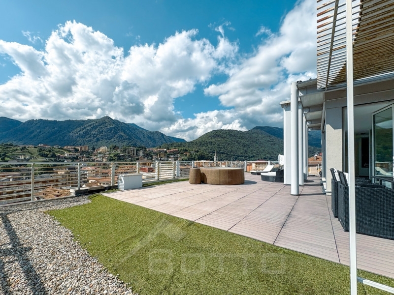 Questo attico in vendita ad omegna si trova all'ultimo piano di un elegante palazzo di nuova costruzione nel centro della città e gode di una suite panoramica: un ambiente unico circondato da vetrate e con accesso diretto a un terrazzo di 250 mq con vista sul lago d'orta.l'immobile caratterizzato da ambienti luminosi e materiali di alta qualità, si compone in questo modo:- l'ingresso si apre su un'ampia e raffinata zona living open space, dove soggiorno e cucina si fondono armoniosamente, illuminata da due grandi vetrate che conducono sul primo terrazzo panoramico con vista sul lago;- un bagno con doccia e zona lavanderia;- tre camere da letto ognuna con accesso ad un terrazzo;- un ulteriore bagno con vasca e un balcone;una scala interna conduce al vero elemento distintivo dell'attico: la suite panoramica, un ambiente unico e scenografico, circondato da vetrate che offrono una vista mozzafiato. La suite dispone di un bagno privato e di un accesso esclusivo al terrazzo.le finiture moderne e di alta qualità conferiscono all'ambiente un carattere elegante e raffinato, con materiali scelti con cura per garantire un'esperienza abitativa di alto livello. l'attico è dotato di impianto domotico avanzato, che consente un controllo intelligente della casa. inoltre è servito da ascensore, che permette un accesso comodo all'appartamento, aggiungendo ulteriore praticità.a completare questa straordinaria proprietà vi sono una cantina e un ampio garage doppio, soluzioni perfette per garantire la massima comodità e sicurezza.questa casa non è solo un'abitazione, ma un invito a vivere il presente con il massimo del comfort e della bellezza. Ogni dettaglio è stato pensato per offrire un'esperienza abitativa senza compromessi, grazie a tecnologie all'avanguardia, finiture di pregio e spazi studiati per esaltare la luce e la vista.se cerchi un luogo esclusivo, in centro città e con una vista mozzafiato, dove il lusso incontra l'emozione e ogni giorno è un'esperienza da vivere, contattaci ora per scoprirlo di persona!