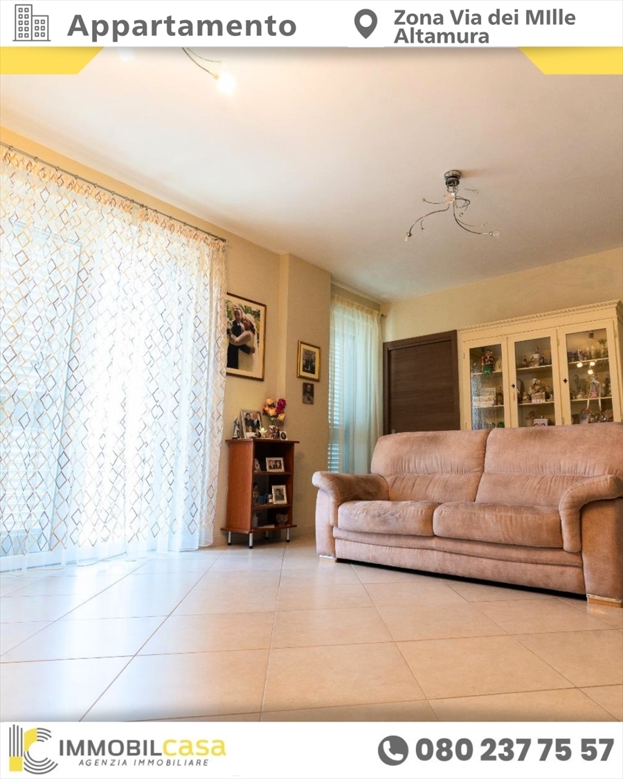 Rif.4 ad altamura, proponiamo in vendita un appartamento di circa 90 mq, inserito in contesto condominiale semi-nuovo, dotato di ascensore, in zona centrale e ben servita.la superficie totale si sviluppa su quattro vani e presenta una distribuzione funzionale degli spazi interni: l'immobile è composto infatti da soggiorno, cucina abitamile, due camere da letto, bagno e pratico ripostiglio.