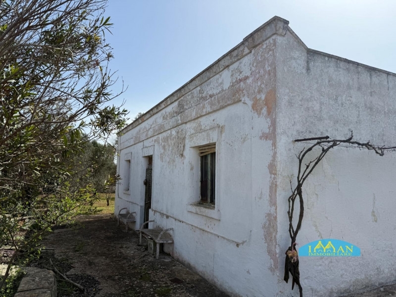 In puglia, alto salento, in agro di ceglie messapica, città d'arte e di gastronomia, proponiamo in vendita antico casolare in pietra con volte tipiche a cielo di carrozza ed a botte, pavimento in cementine a mosaico originali, composto da soggiorno, ampia cucina con camino, 2 camere da letto, cisterna, piazzale in chianca, ampio terreno di circa 2 ettari piantumato con 140 piante d'ulivo , frutteto e vigneto. Possibilità di ampliamento e piscina.