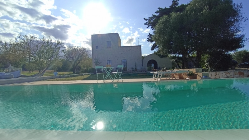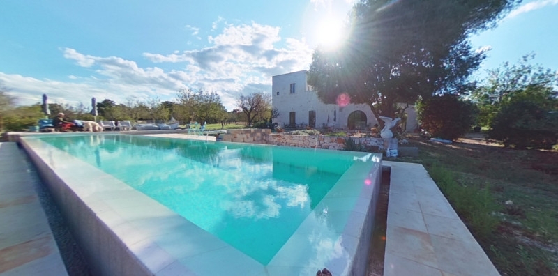 Rif. Ostan - immerso nella amena campagna tra i territori di ostuni e ceglie messapiaca, sansonetti immobiliare propone in vendita casale ristrutturato indipendente in pietra con piscina, camposto da 3 camera da letto con rispettivi bagni sala con caminetto soggiorno cucina abitabile e cortile interno al piano terra e ulteriore camera da letto con servizi al piano primo con terrazzi a livello con ampia veduta sulla campagna circostante, completano la prorpietà un ampio spiazzo/aia la piscina di circa 70 mq e il terreno circostante di 2,5 ettari.la localizzazione dell'immobile è approssimata a 200 metri circa in linea d'aria da quella indicata in mappa, per questioni di privacy non forniremo la reale posizione maggiori dettagli consultando il tour virtuale a 360° linkato nell'annuncio in alto al centro o sotto la prima foto altrimenti su richiesta.