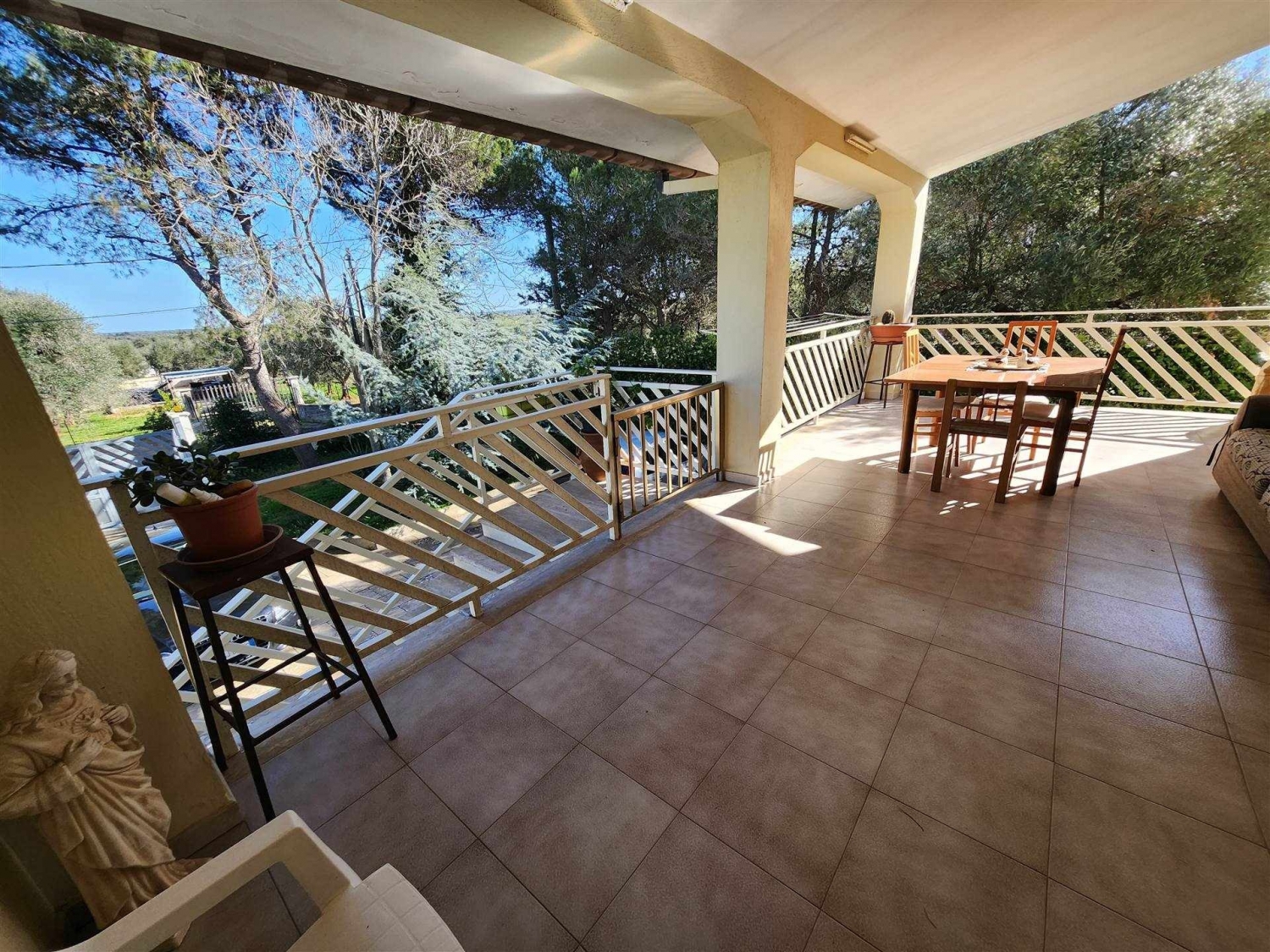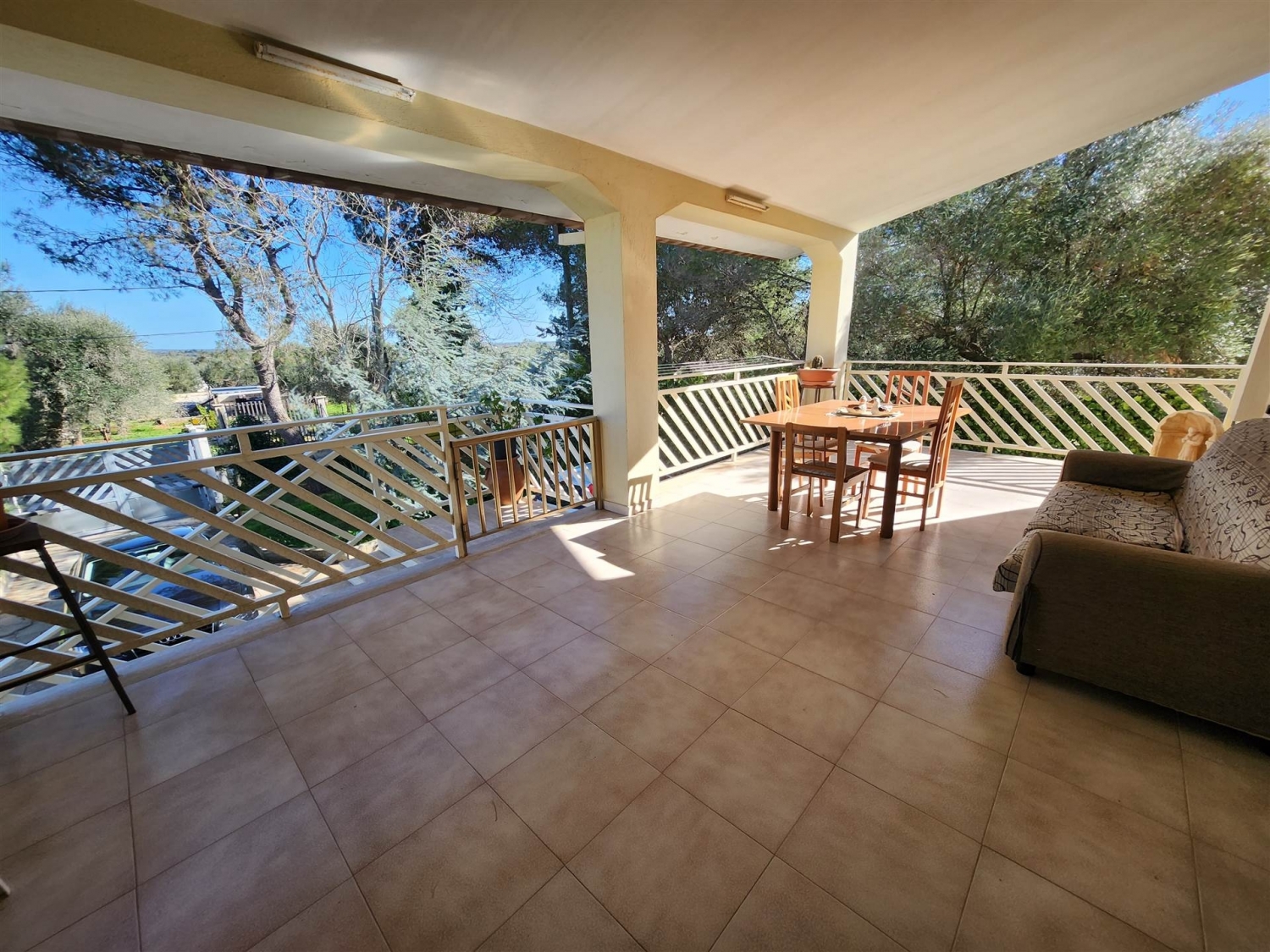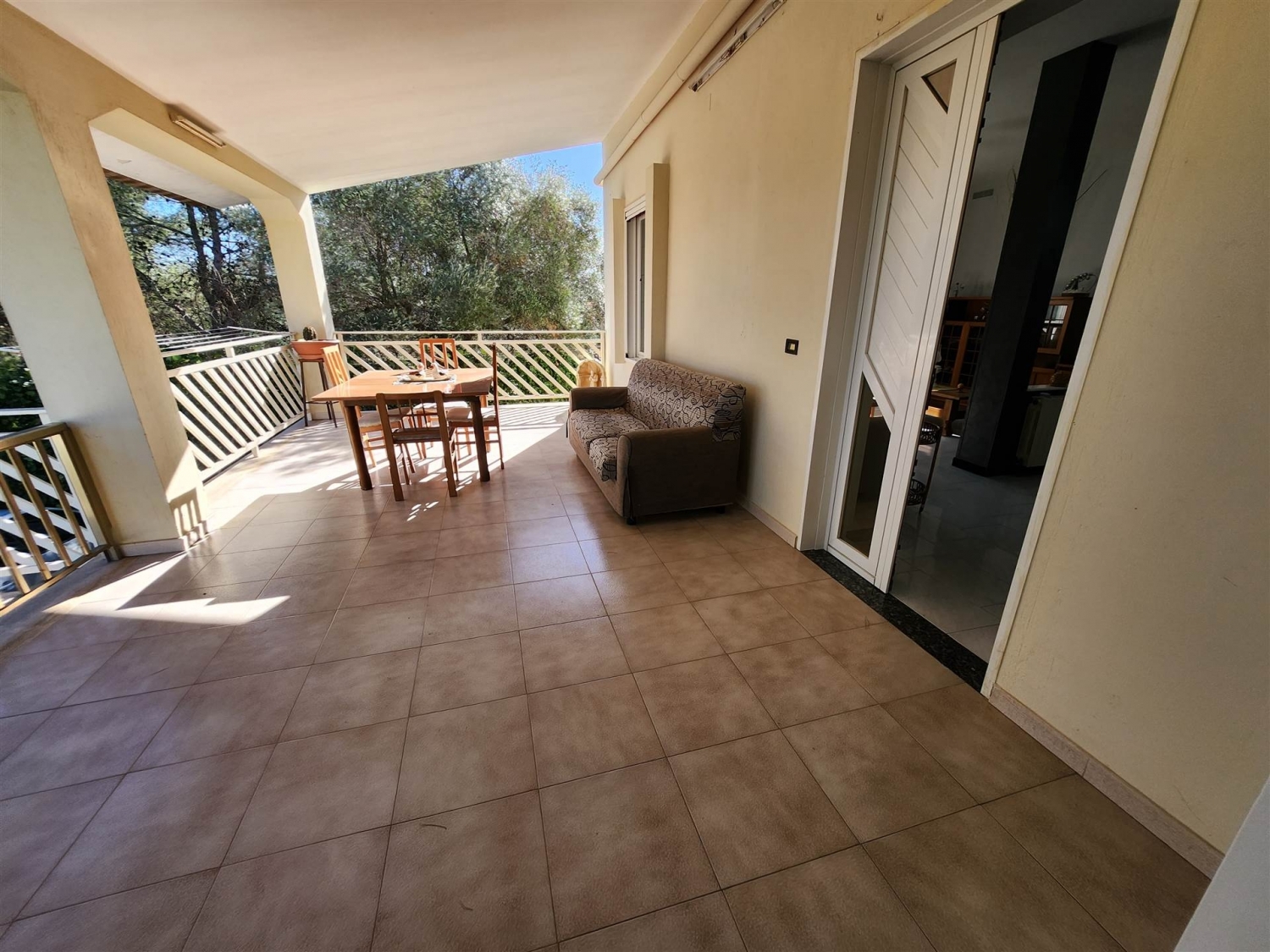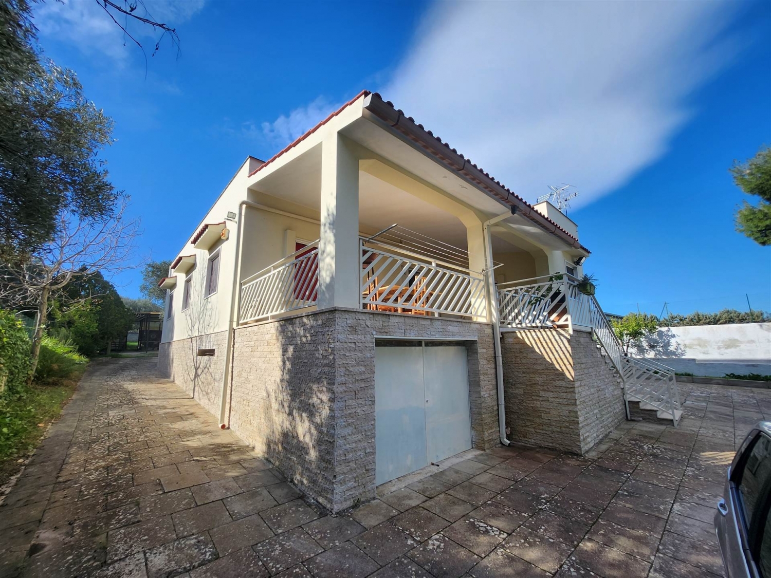 A poca distanza dal centro del paese , in zona residenziale , proponiamo in vendita questa villa composta da ingresso in soggiorno , cucina abitabile con termo camino , cucinino , tre camere da letto e bagno . Garage di mq. 80 e un vano deposito comodo e spazioso. Terreno piantumato con alberi d'ulivo . classe energetica: f epi: 0 kwh/m2 anno