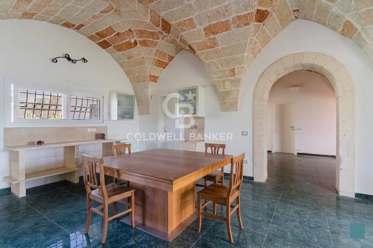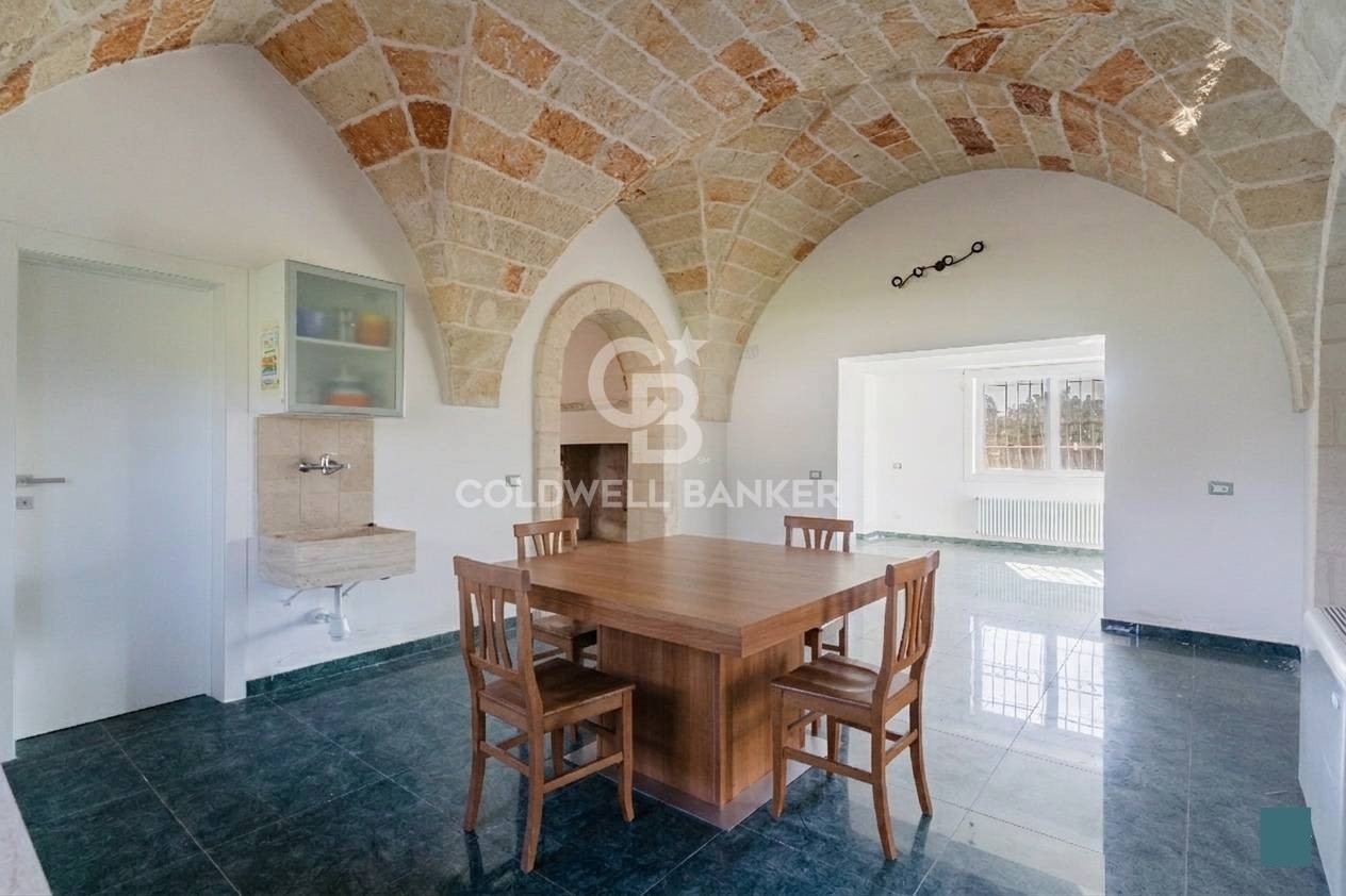 Corigliano d'otrantonel suggestivo scenario della campagna della grecùa salentina, precisamente nel comune di corigliano d'otranto, sorge questa incantevole dimora di circa 220 mq, con terrazzi per circa 133 mq e un terreno di un ettaro e mezzo.la proprietà è frutto di una ristrutturazione e ampliamento di un antico nucleo con volte a stella eseguita nel 2019.la dimora è dotata quindi di tutti gli impianti nuovi ma ci avvolge con lo charme dei soffitti con pietra a vista che conferiscono eleganza e calore.la zona giorno si compone di un ampio soggiorno con camino, collegato a una spaziosa sala da pranzo e alla cucina, creando un ambiente ideale per la vita quotidiana e per accogliere gli ospiti.la zona notte, situata sullo stesso livello, ospita tre confortevoli camere da letto, ciascuna dotata di bagno en suite, di cui uno con vasca idromassaggio.dal soggiorno, una scala conduce al piano superiore, dove si trova un'ulteriore camera da letto con bagno en suite e accesso diretto a due ampi terrazzi di circa 20 mq ciascuno, dai quali si gode una splendida vista panoramica a 360° sulla campagna salentina.gli spazi esterni sono stati progettati anche per il tempo libero: è presente un bagno a servizio dell'area patio comodo in considerazione della possibilità di realizzare, eventualmente, una piscina.la villa si presenta in ottime condizioni ed è dotata di, impianto di allarme con servizio di vigilanza, impianto fotovoltaico da 4.5 kw, pozzo artesiano, fossa imhoff e predisposizione per impianto di condizionamento. L'impianto di irrigazione, infine, facilita la manutenzione del verde.questa residenza rappresenta la soluzione ideale per chi desidera una dimora indipendente immersa nella quiete e nella natura, senza rinunciare alla vicinanza ai principali servizi. La proprietà si trova infatti a breve distanza dal centro di corigliano d'otranto, affascinante borgo ricco di storia e tradizioni, e a pochi chilometri da località rinomate come maglie e galatina, celebri per i loro centri storici. Dista inoltre 18 km da lecce, circa 24 km dalla splendida costa adriatica, con le sue rinomate località balneari, e 74 km dall'aeroporto di brindisi.