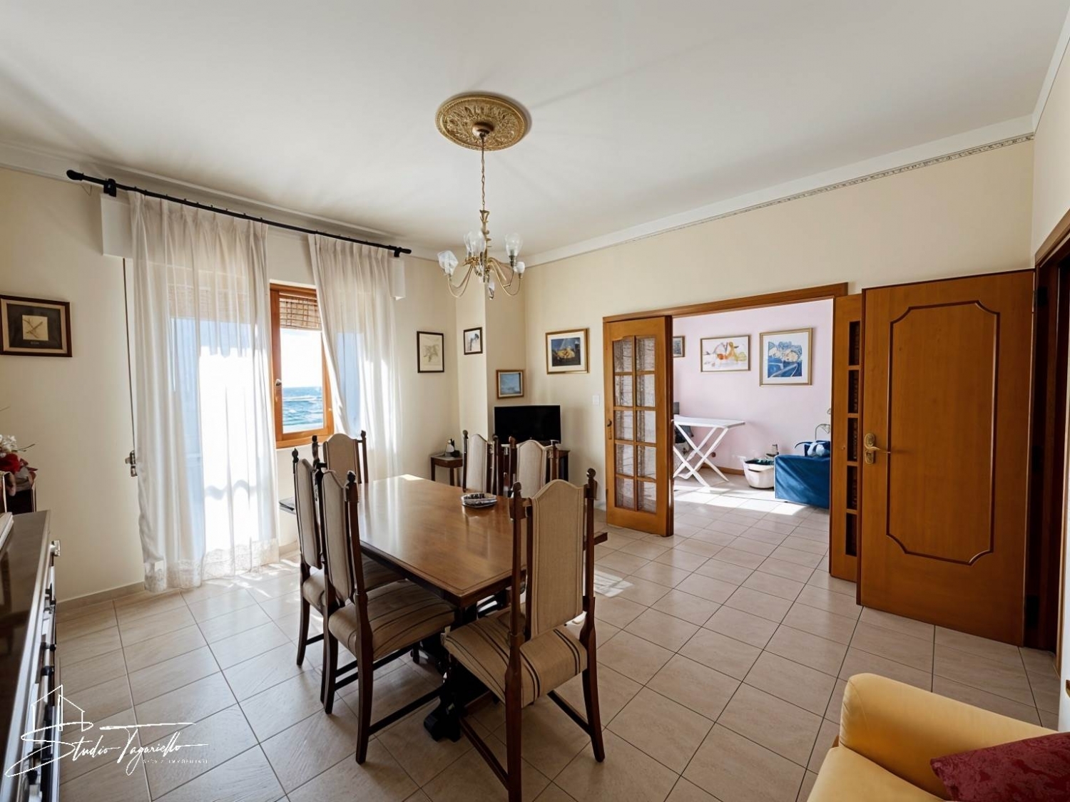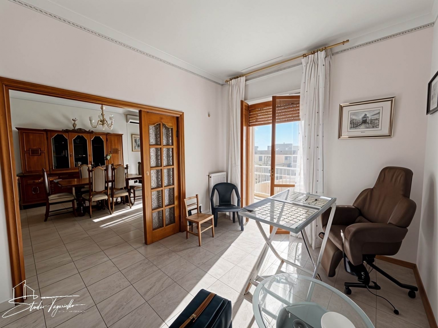 Proponiamo in vendita un ampio e luminoso appartamento situato al quarto piano, comodamente servito da ascensore. L'immobile gode di una tripla esposizione che garantisce luce naturale per tutto il giorno e una splendida vista panoramica.l'appartamento è caratterizzato da una distribuzione funzionale degli spazi:ingresso disimpegno: un corridoio accogliente che collega in modo razionale tutti gli ambienti.zona giorno: un ampio e confortevole soggiorno con accesso diretto al balcone, cucina abitabile spaziosa.zona notte: una grande camera matrimoniale e due stanze, ideali per bambini, studio o stanza degli ospiti.servizi: un bagno padronale e un pratico ripostiglio, essenziale per l'organizzazione della casa.pertinenze:la proprietà include un prezioso posto auto all'interno del cortile condominiale recintato, che garantisce sicurezza e facilità di parcheggio.caratteristiche principali:piano alto con ascensore (4° piano)vista aperta e panoramicaposto auto in area recintataottima divisione tra zona giorno e zona notteideale per famiglie numerose o per chi cerca ampi spazi classe energetica: g epi: 135,1 kwh/m2 anno