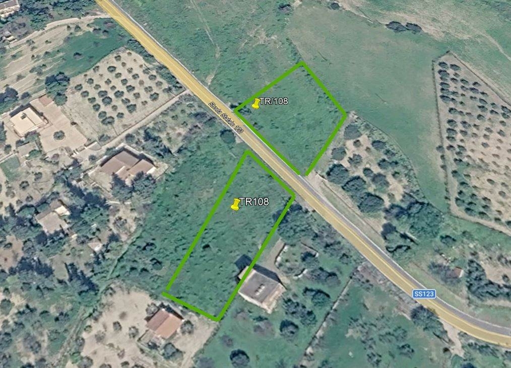 Tr/108 - terreno agricolo di ampia metratura. Proponiamo in vendita un interessante terreno agricolo situato in una posizione strategica, precisamente in contrada santa oliva, lungo la s.s. 123. Una soluzione ideale per chi cerca un appezzamento facilmente accessibile e versatile. Superficie totale: 3.480 mq circa, fronte strada sulla strada statale 123. Il terreno è diviso in due spezzoni dalla sede stradale, garantendo un doppio affaccio e un'estrema facilità di manovra e accesso ai mezzi agricoli. zona rinomata per la sua vocazione agricola e la qualità del suolo. L'ubicazione direttamente sulla s.s. 123 rappresenta un valore aggiunto fondamentale, la visibilità è ottima e i collegamenti con i centri abitati limitrofi sono rapidi e agevoli. La divisione in due lotti permette inoltre una gestione flessibile delle colture o degli spazi. per informazioni su prezzi, sopralluoghi o per visionare la documentazione tecnica, non esitate a contattarci citando il riferimento tr/108. classe energetica: g epi: 0 kwh/m2 anno